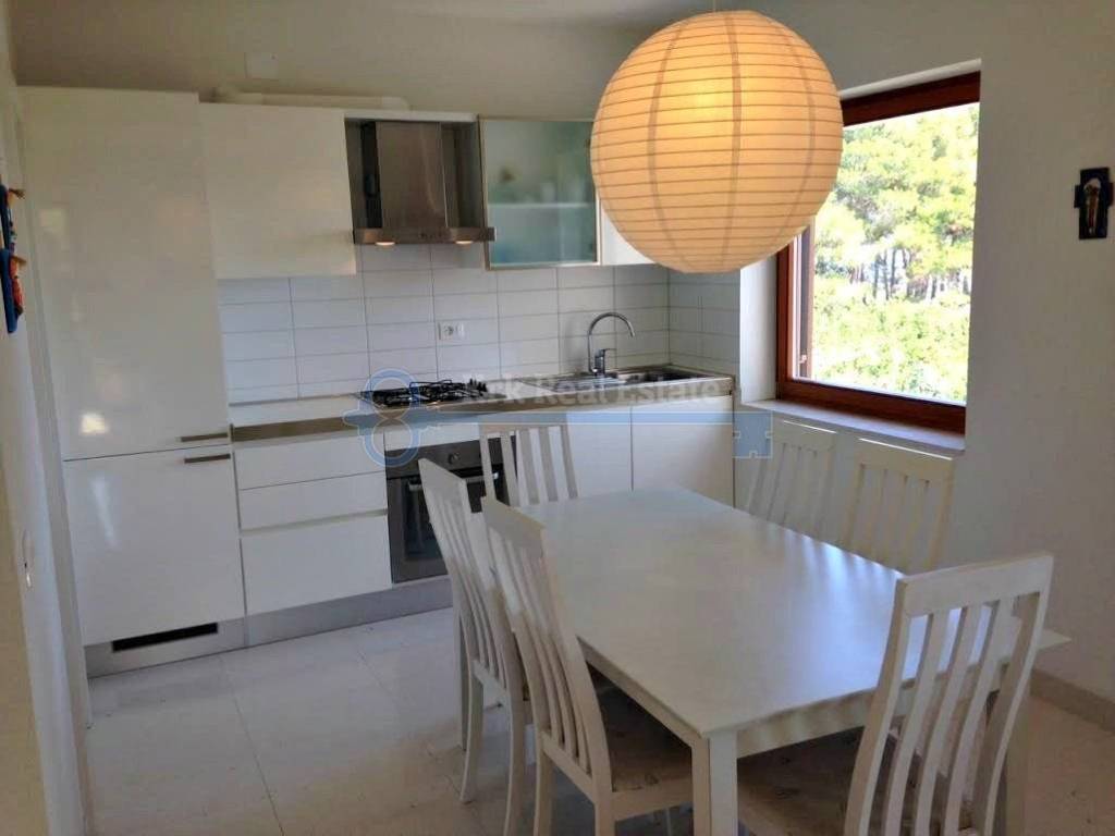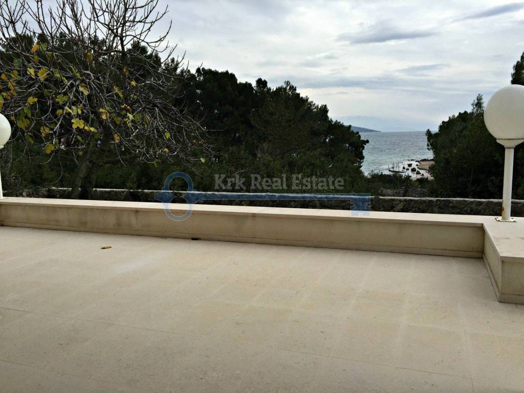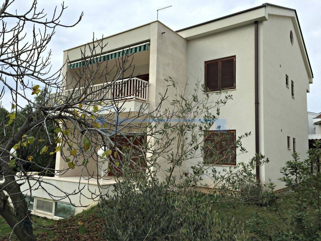 For sale is a newly built house, with living space of 300 sqm. It consists of a basement, ground, first floor and high attic. The basement is designed for apartment, tavern or wellness, and now there is a hall, kitchen and bathroom. The ground floor, first floor and high attic are identical with entrance hall, living room with access to a large terrace, kitchen with pantry, dining room, two bedrooms with balconies and two bathrooms. Have beautiful garden area of 600 m2 with covered parking for several cars. It is situated on the excellent location next to the sea and the beach.