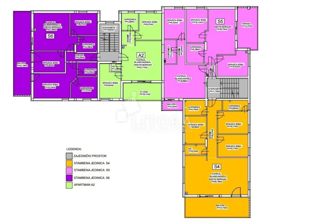 Located in an exceptional area of Vodice, in a quiet part of the wider city center, this ground floor residential unit in a modern new building is for sale. It is situated just 100 meters from the beach and 400 meters from the town center, in the second row from the sea. Residential unit S5 consists of two separate apartments, with a total usable area of 119.02 m²:
