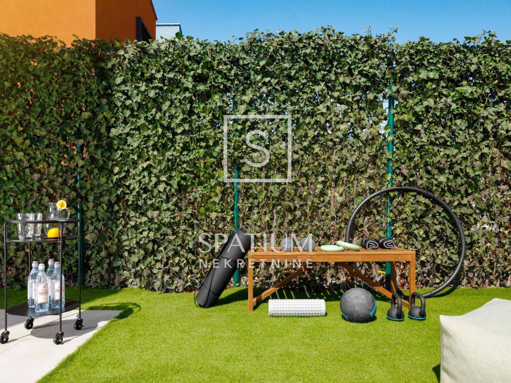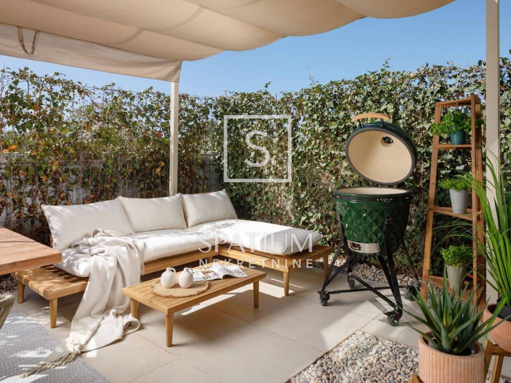 The outdoor area of the house includes a spacious yard of 92 m² with a garden and relaxation space. The main highlight of the yard is the jacuzzi/swimming pool with countercurrent swimming, ideal for enjoying throughout the year. There is also a barbecue for summer gatherings and an outdoor shower for added comfort.