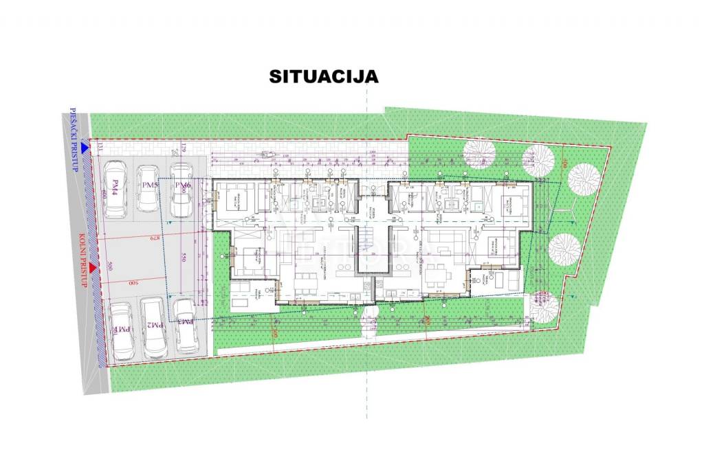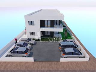Vodice – New build, two-bedroom apartment 74,63m² with garden. Apartment S2, located on the ground floor of a modern residential building with a total of four units. The apartment is east-oriented, with a total usable area of 74,63m², and consists of: hallway, WC, bathroom, office room, two bedrooms, and a spacious living room with kitchen and dining area, with access to the covered terrace. The apartment also includes a garden of 121,22m², surrounding the apartment and terrace. One outdoor parking space is included. Distances: beach 1,500 m, town centre 1,300 m. Planned move-in date: Summer 2026. Apartment equipment: Air conditioning for heating and cooling in every room, 10 cm styrofoam façade, ceramic tiles throughout the apartment, aluminium shutters with electric lifts and insect screens, electric underfloor heating in the living room and bathroom.