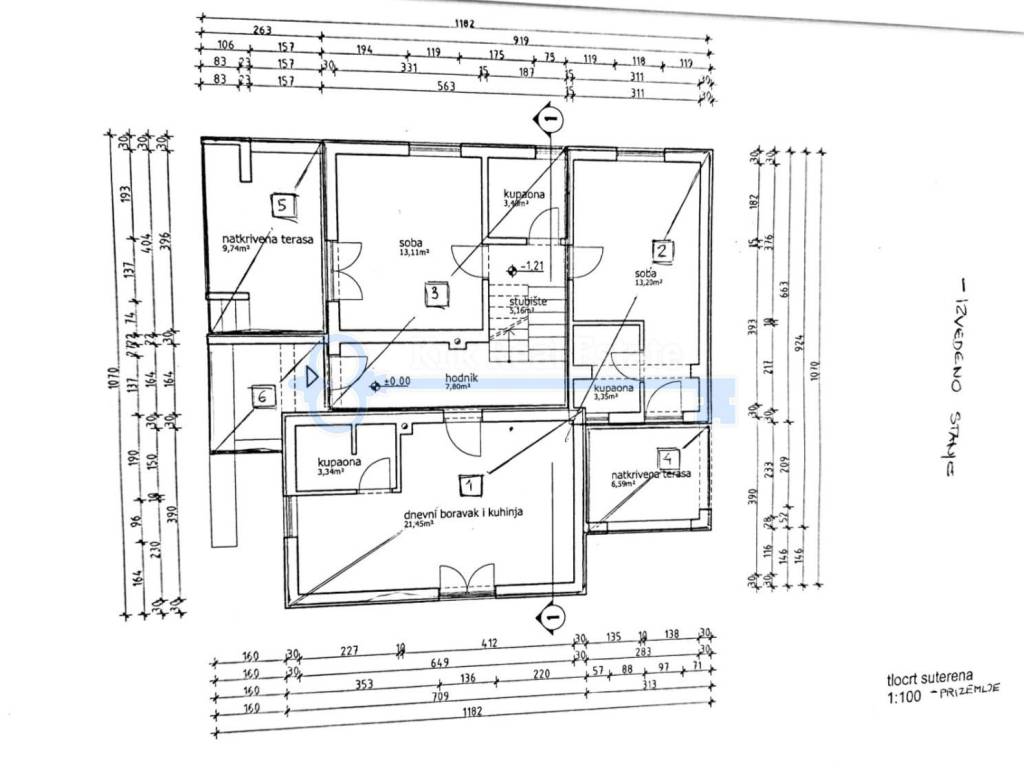 For sale is a house with a living area of 130 m2, consisting of a basement, mezzanine and first floor. The basement has a living room and kitchen, two bedrooms and a bathroom, while the mezzanine and first floor have a living room, kitchen and dining room, three bedrooms and two bathrooms. It has a landscaped garden. It is 520 meters from the sea and the beach.
