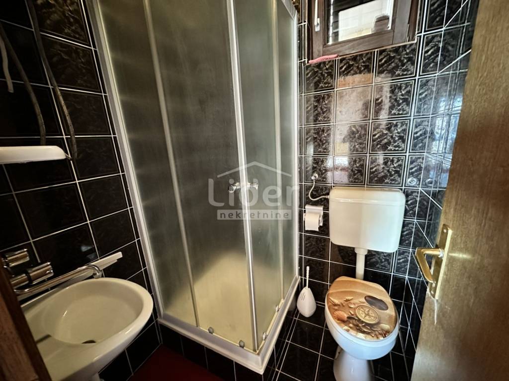 On the first floor, there are two almost identical studio apartments, each measuring 30 m², accessed via a large terrace of 30 m². Each apartment consists of a large room, a small kitchenette, and a bathroom. The first floor offers a beautiful view of the sea. Next to the house is a large garage of 24 m². On the south side of the garage, there is an annex with a canopy and a gazebo of approximately 15 m². The yard also boasts plenty of greenery (fig trees, grapes, etc.)...