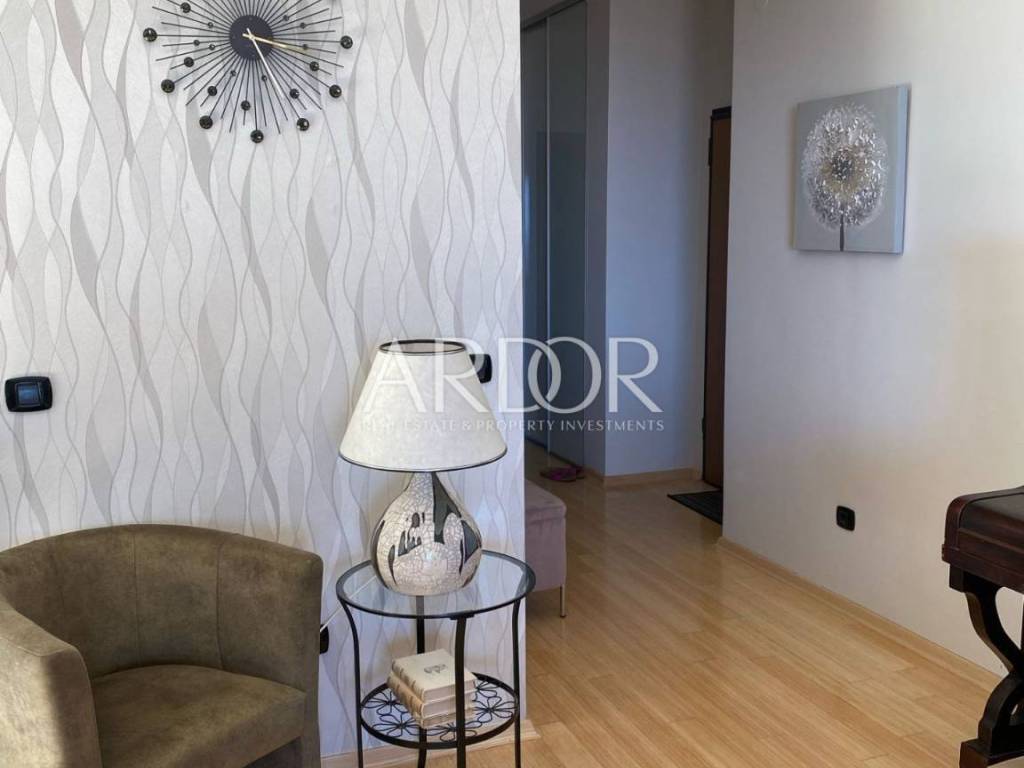 The apartment consists of 2 bedrooms, 2 bathrooms, living room, kitchen, dining room, terrace, loggia, parking space, the building also has its own garage and a private pool that can be used by all tenants. Square footage is 90 m2. Heating is with air conditioning and electricity.
