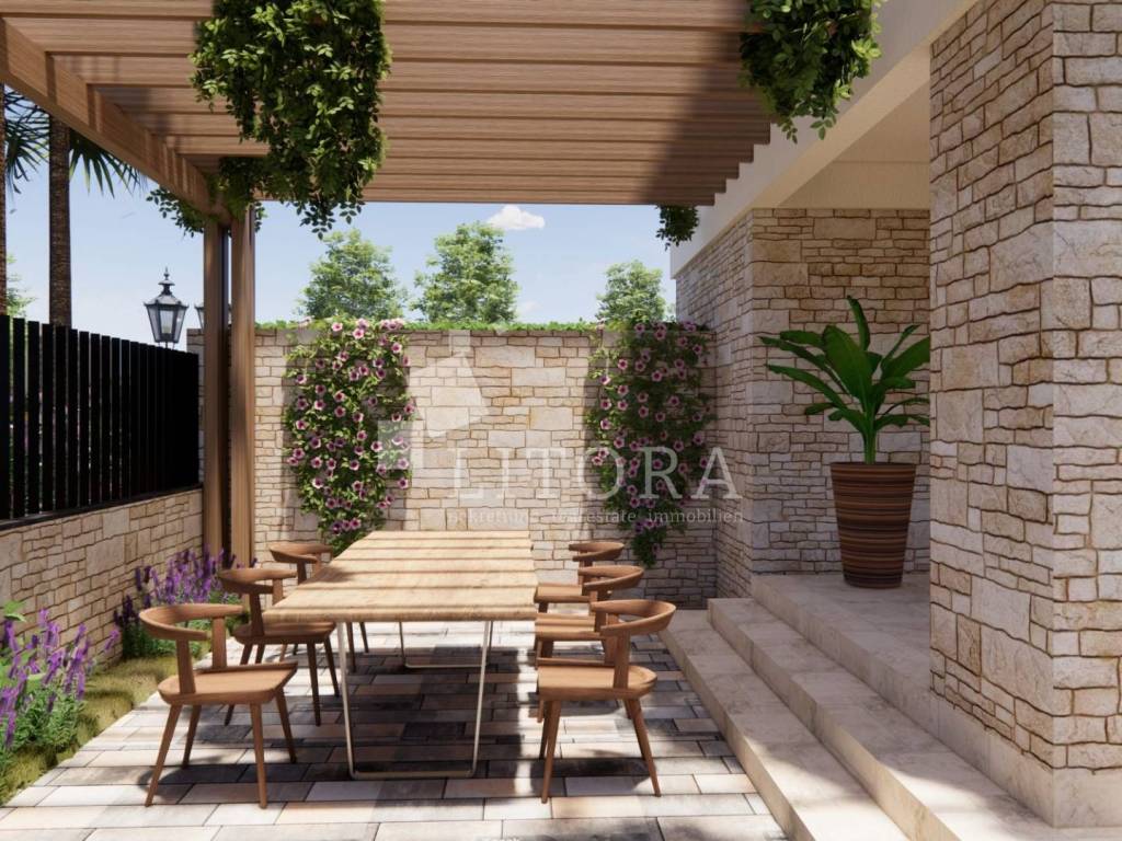 Brodarica Prestige Residences, an exclusive residential project in close proximity to the sea. Residence 1 – Apartment S1, with a total usable area of 64.23 m², is located on the ground floor of a smaller residential building. The apartment has an area of 42.70 m² and consists of one bedroom, a bathroom, a kitchen with dining area that opens onto a terrace of 8.93 m² and a courtyard of 65.80 m². The apartment includes a parking space of 16 m² (with the option to purchase an additional one) and a storage room of 3.20 m². It will be equipped with high-quality premium stone wool insulation, aluminum joinery with insect screens and triple glazing, premium ceramics and sanitaryware, premium three-layer parquet, underfloor heating in the bathroom and living room, and air conditioning units. The courtyard will be landscaped with greenery, a pergola on the terrace, a barbecue, and underground waste containers. Completion and move-in are scheduled for the end of 2026. The distance to the sea/beach is only 80 meters, making this property ideal for a peaceful family life or for tourist rental
