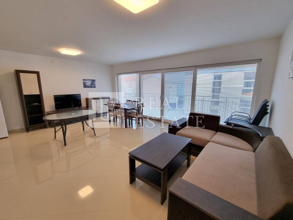 It is located on the 2nd floor of a residential building, and the area of 97 m2 consists of a hallway, kitchen, spacious living room with access to a covered terrace, two bedrooms, bathroom, toilet and storage room.