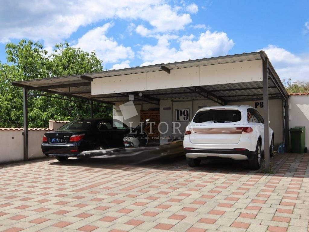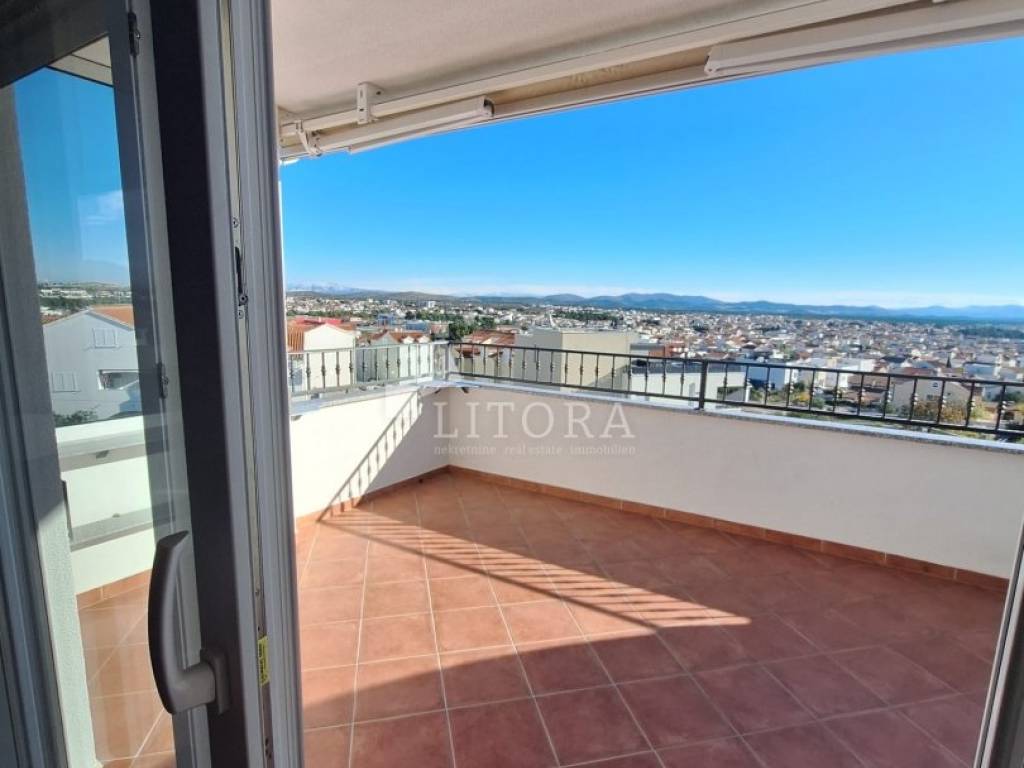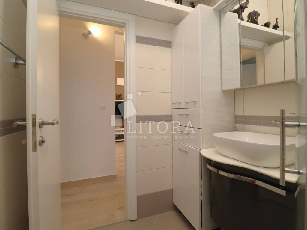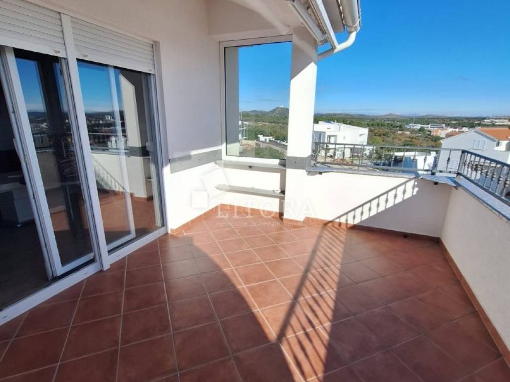Vodice, a fully furnished and comfortable two-bedroom apartment with a beautiful sea view. It is located on the 2nd floor of a residential building, 1,500 meters from the beach and 1,100 meters from the town center. The apartment is south-facing and has 67.76 m² of usable living space. It consists of an entrance hall, a spacious living and dining area with access to a large covered terrace, a bathroom, and two bedrooms, one of which has its own balcony. The covered terrace of 14.51 m² offers a lovely sea view. The apartment is equipped with air conditioning and a wood-burning stove. It is sold fully furnished, with all furniture included in the price. The property includes a designated covered parking space with a storage room, as well as an additional storage room of 3.94 m² in the basement of the building.