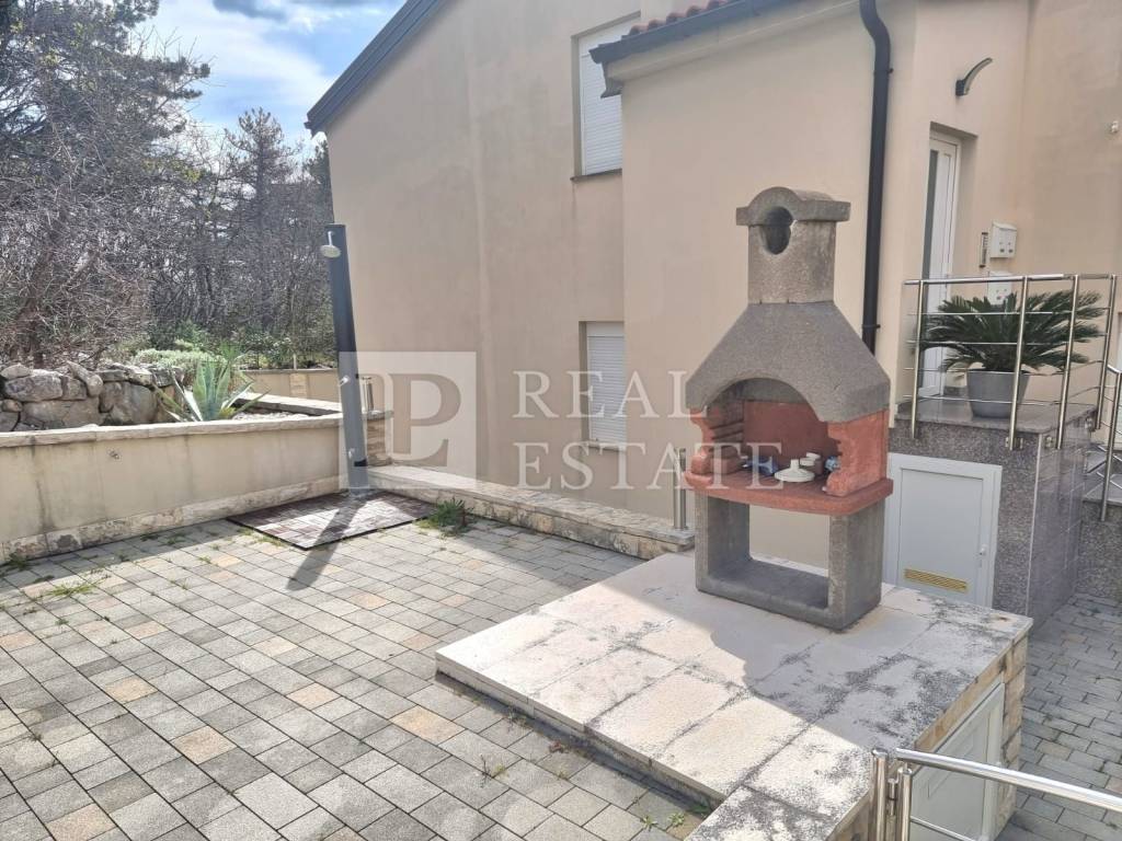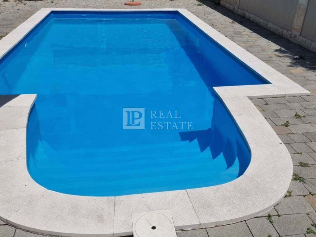 The yard of the building of 550 m2 is shared. Also in the garden there is a barbecue, a spacious swimming pool and a sunbathing area next to it.