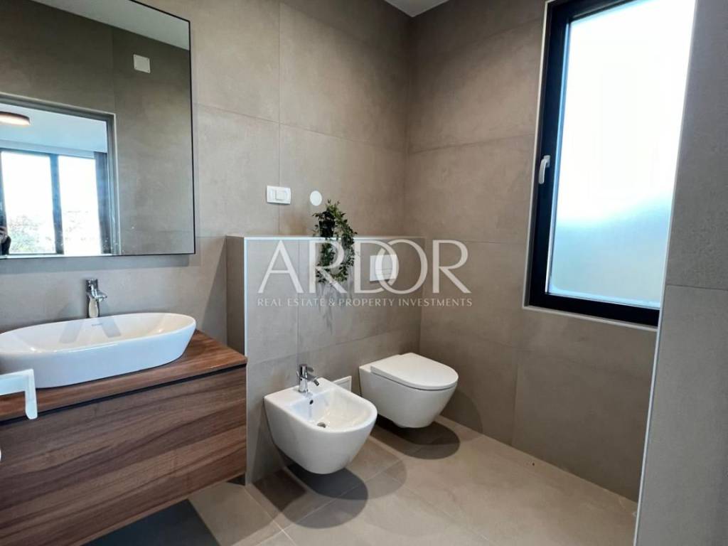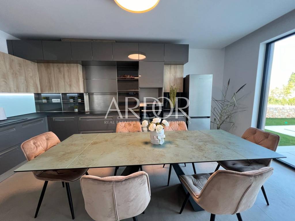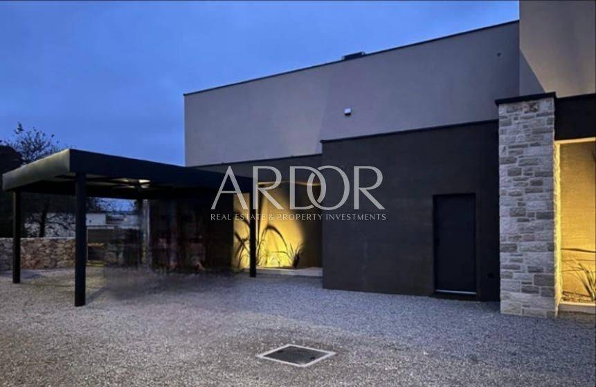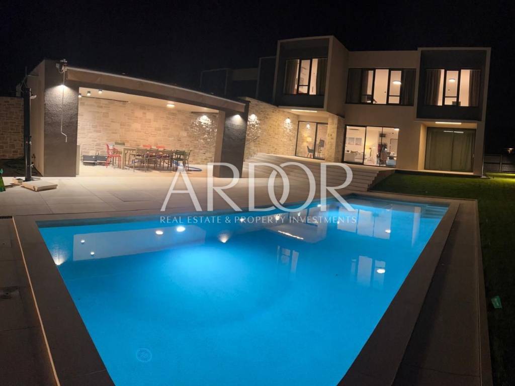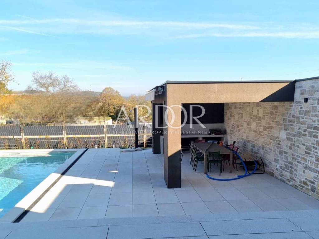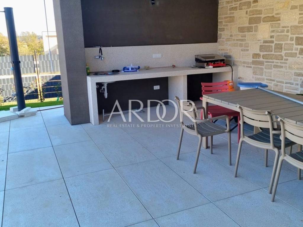 In a peaceful and picturesque village near Rovinj, this modern semi-detached house perfectly combines contemporary design with functionality. With a total of 225 m² of living space spread over two floors and a spacious 500 m² yard, including a garden, pool, and summer kitchen, it offers an ideal environment for family life.