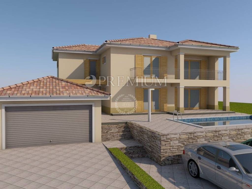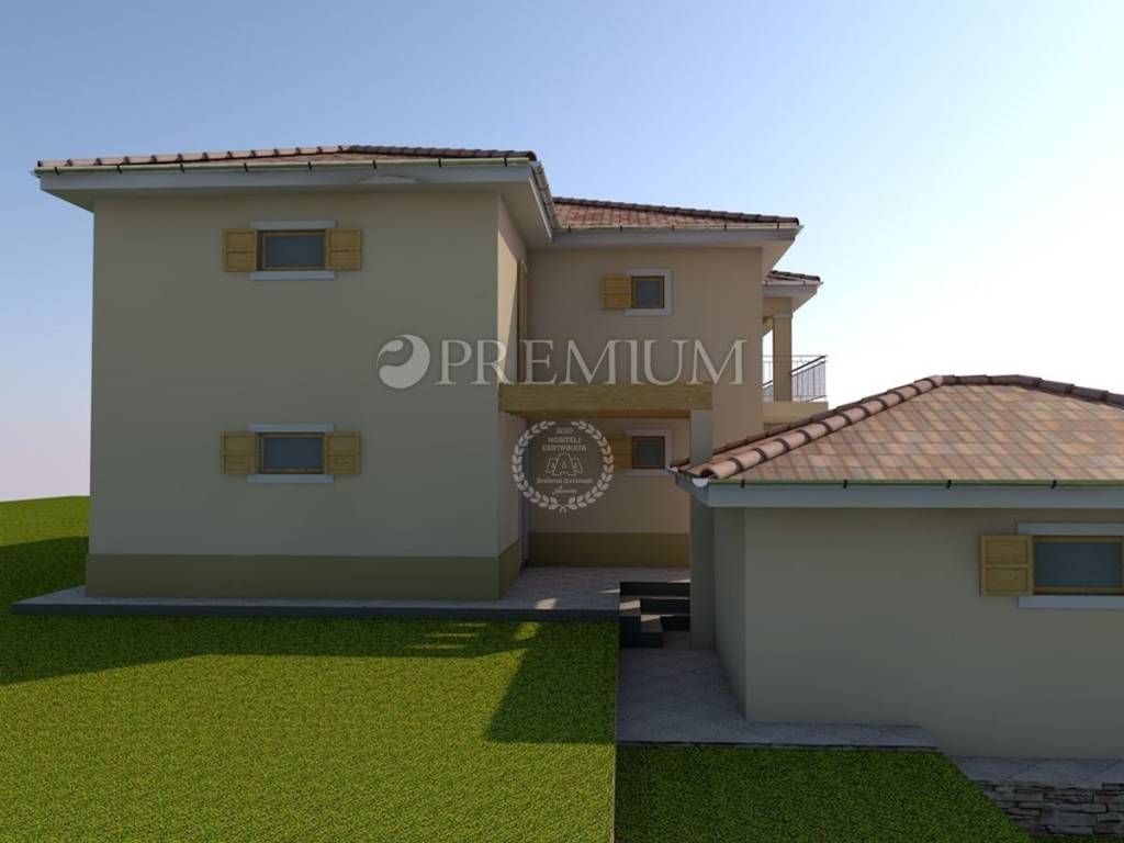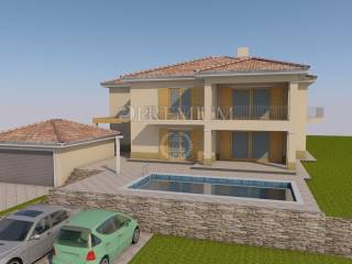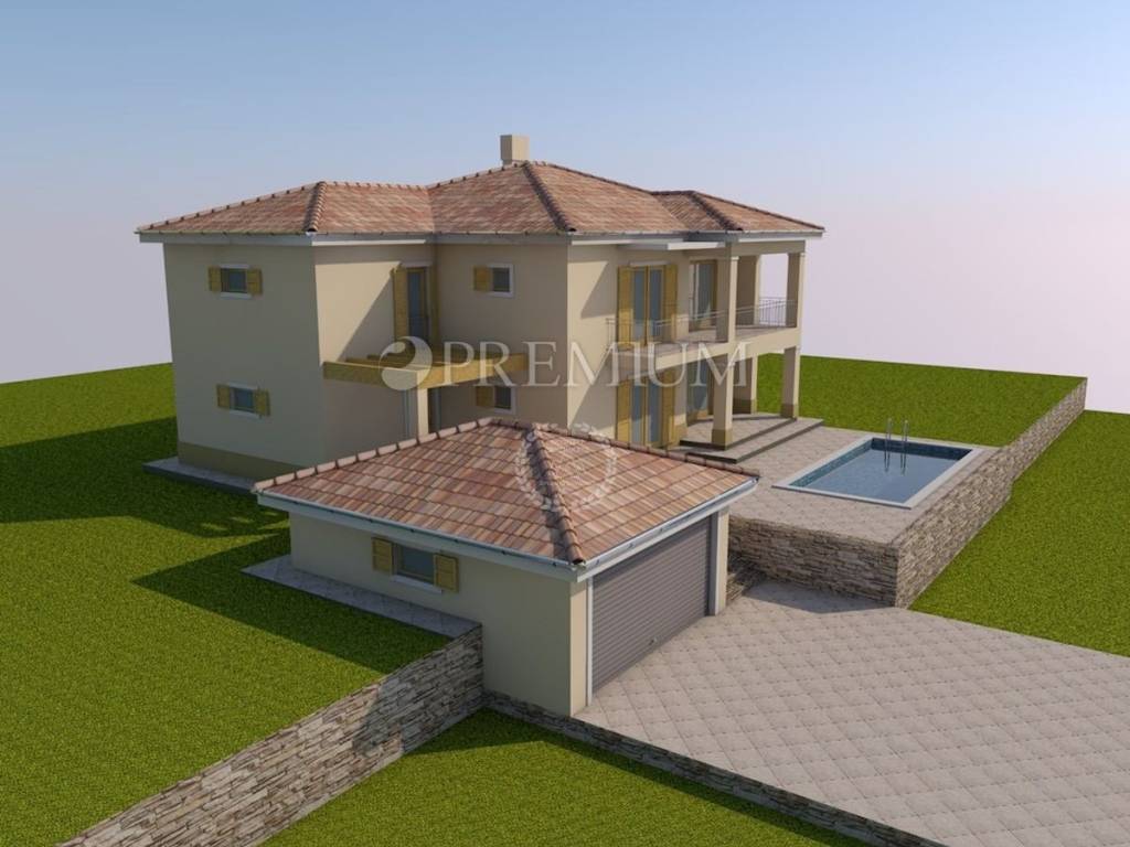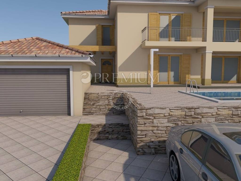 Građevinsko zemljište površine 1144 m2, s pravomoćnom građevinskom dozvolom za rušenje postojeće kuće, i za izgradnju samostojeće kuće s dvije stambene jedinice, bruto površine 295 m2, s garažom površine 37 m2, i bazenom, dimenzija 4 m x 8 m.