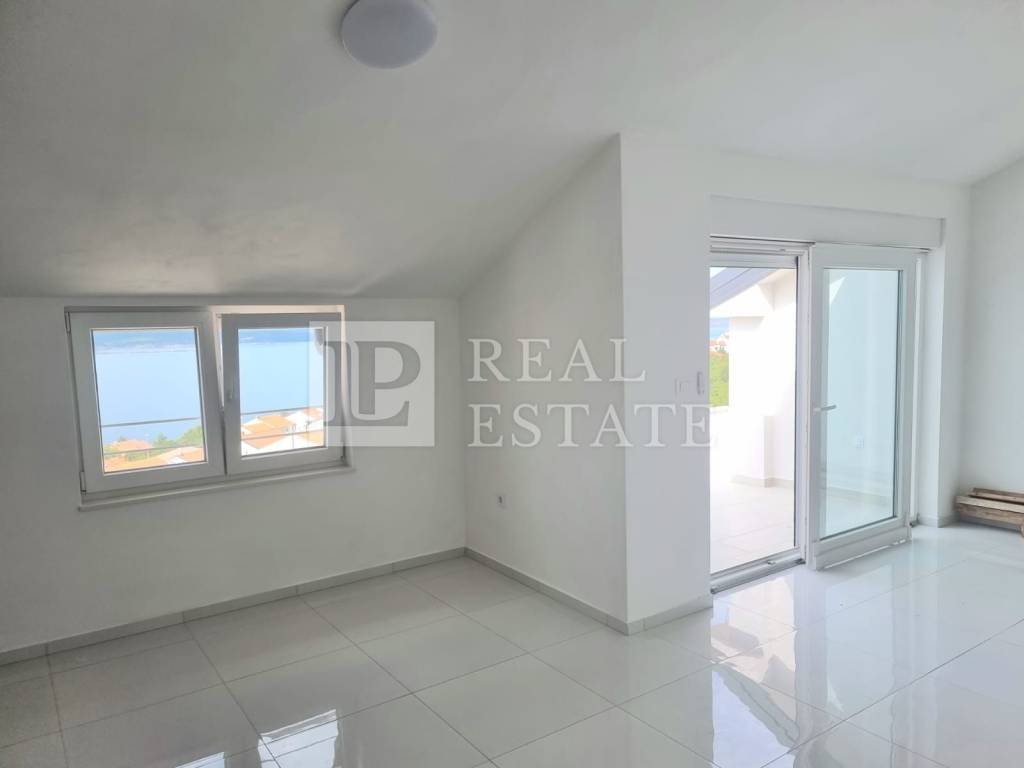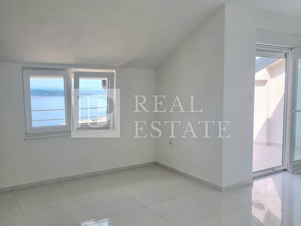 The apartment is located in a smaller residential building consisting of only four residential units. It is located on the 2nd floor and consists of a kitchen with a dining room, a living room, three bedrooms, two bathrooms, a toilet and two spacious balconies with a beautiful view of the sea. The apartment has two parking spaces located inside the building's garden.