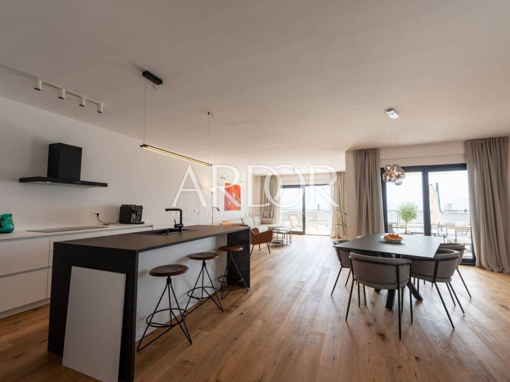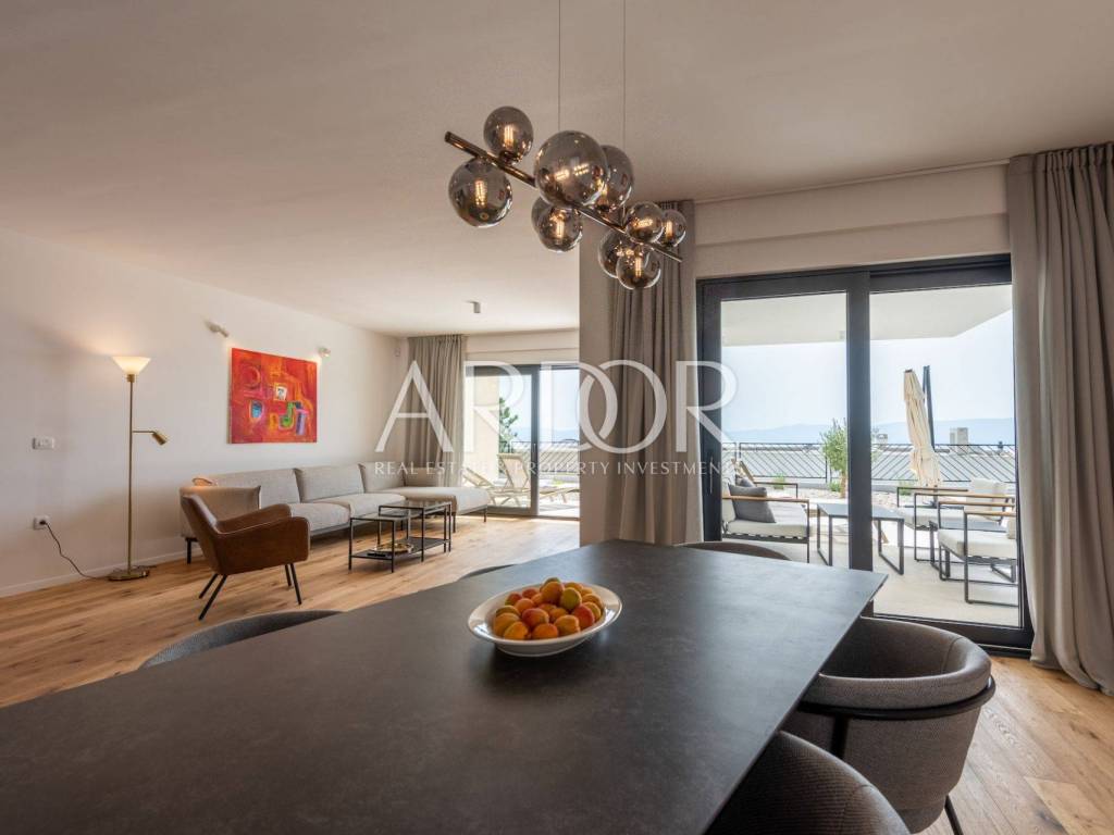The villa is situated on an elevated position that ensures a good view and a peaceful environment in a new neighborhood surrounded by greenery. On the ground floor, there is a living room with a kitchen and dining area in an open-plan layout, with access to a covered terrace and a pool. On this floor, there is also a smaller bathroom. Internal stairs lead to a spacious garage and boiler room or to three bedrooms upstairs. The master bedroom has its own bathroom and a walk-in closet. On the upper floor, there is another larger bathroom and a west-facing terrace. The property was built in 2022 and is immediately ready for occupancy.
