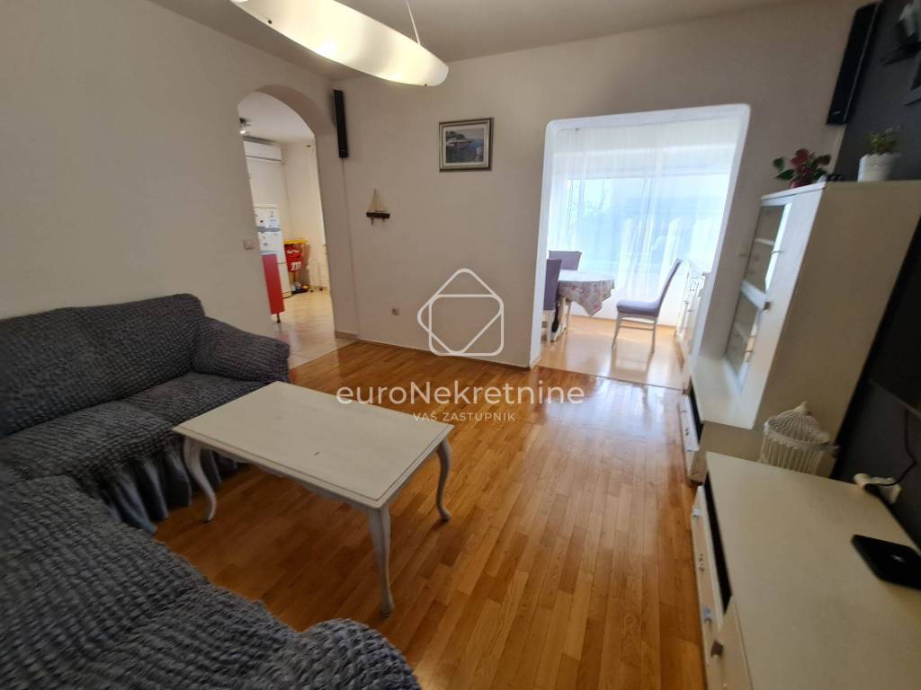 Stan je u izvrsnom stanju, održavan s puno pažnje, što ga čini spremnim za useljenje bez dodatnih ulaganja. Plaža je udaljena samo nekoliko minuta hoda, što je idealno za one koji uživaju u blizini mora.