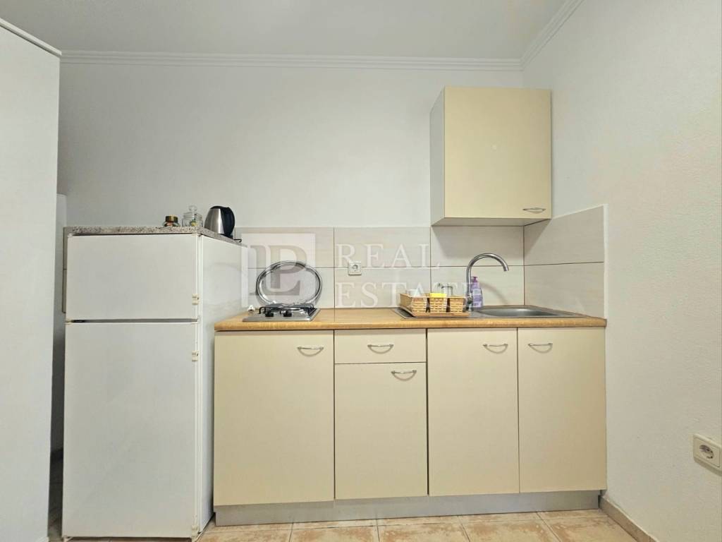 The apartment has an area of ​​40.66 m2 and consists of a kitchen, dining room, living room, bedroom, bathroom and terrace. The apartment also owns an additional space of 12.19 m2, which has a separate entrance and has been converted into a studio apartment, consisting of a kitchen with a living room and a bathroom. Heating and cooling are provided by two air conditioners, and the building also has a chimney, which allows year-round use.