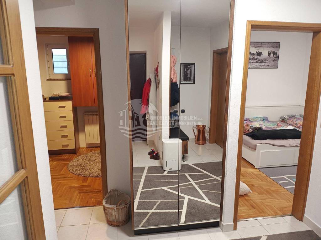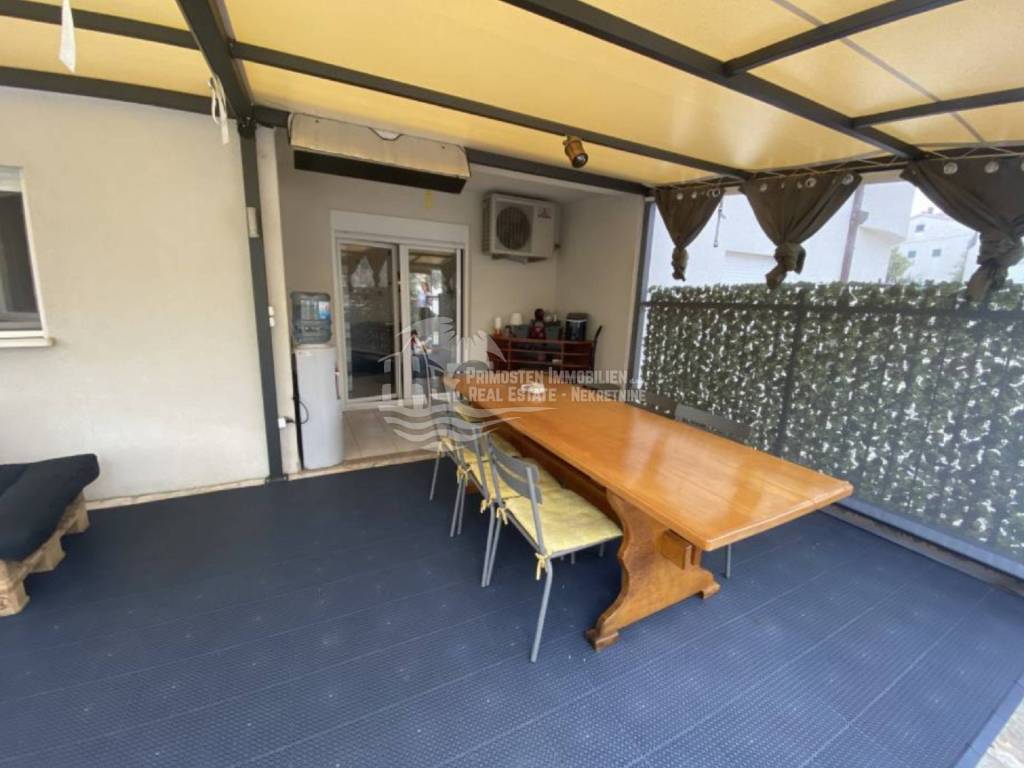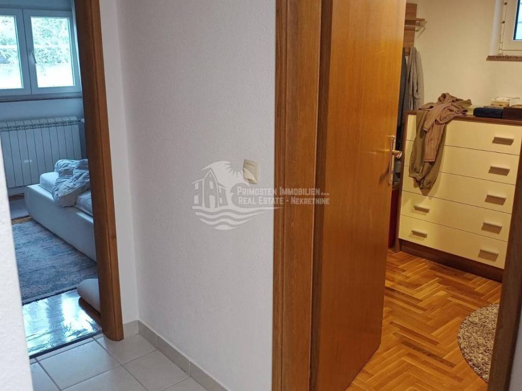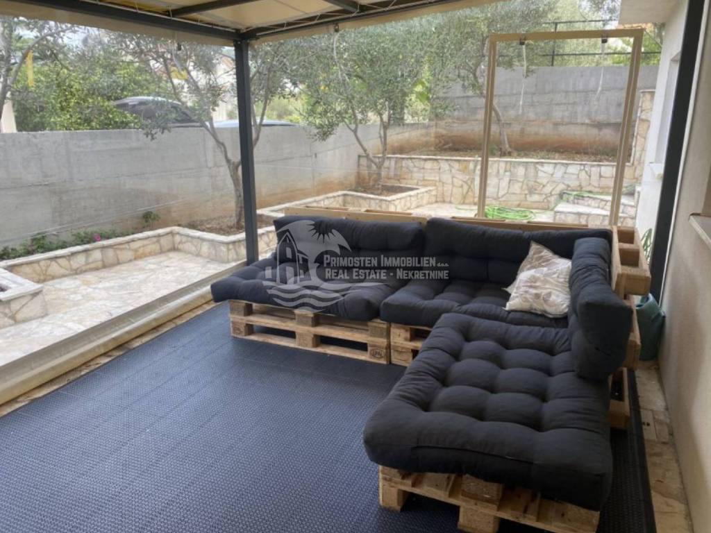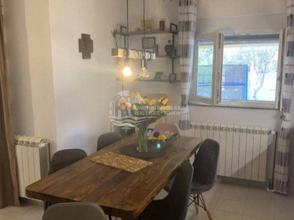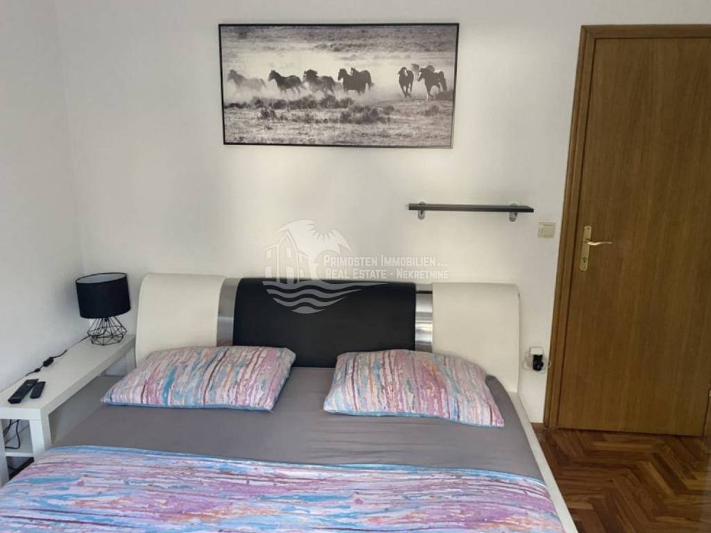 In an extremely attractive location, only 200m from the famous beach in Okrug Gornji, with excellent access road, we are selling a comfortable three-bedroom apartment. The apartment is located in a smaller, recently built residential building. The living area of the apartment is 70 m2 plus a covered terrace of 5m2. The attached garden with a total area of 161m2 provides the owner with complete intimacy and privacy, and enormous possibilities for decoration. Along with the apartment, a garage with a total area of 76m2 is also being sold. The garden is maintained and cultivated, and the apartment is being sold fully furnished.