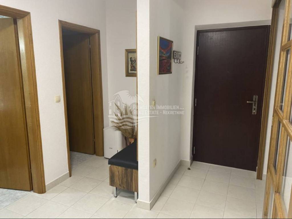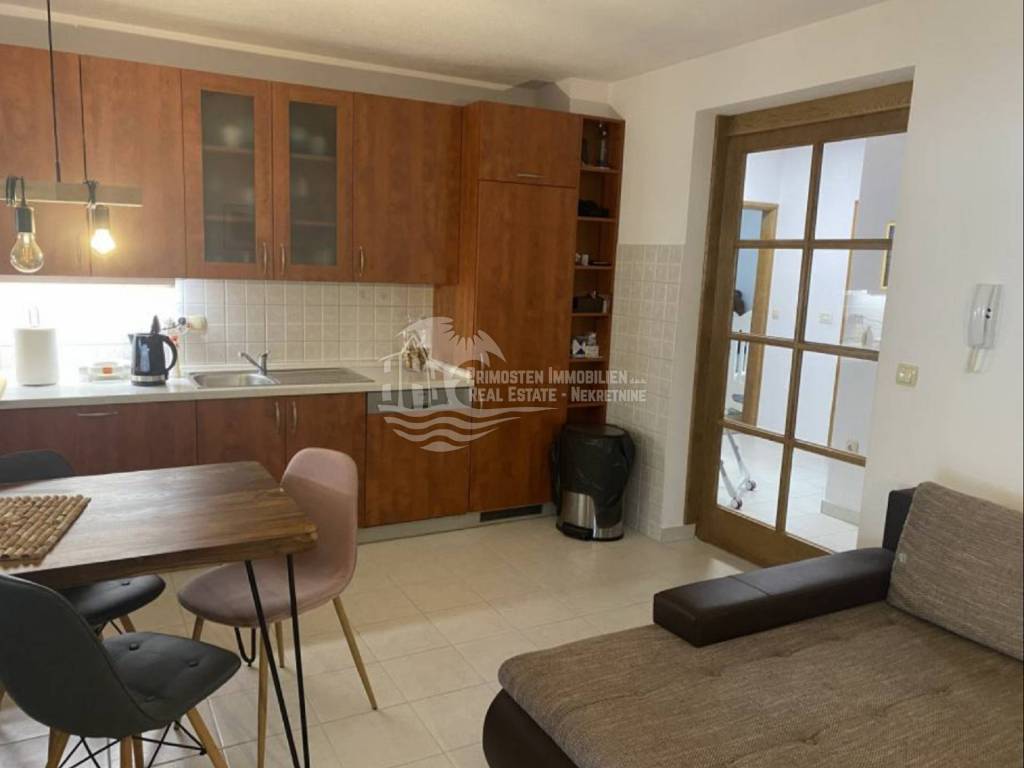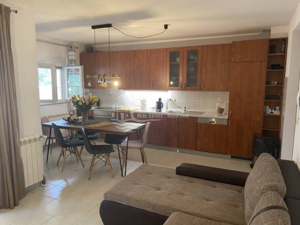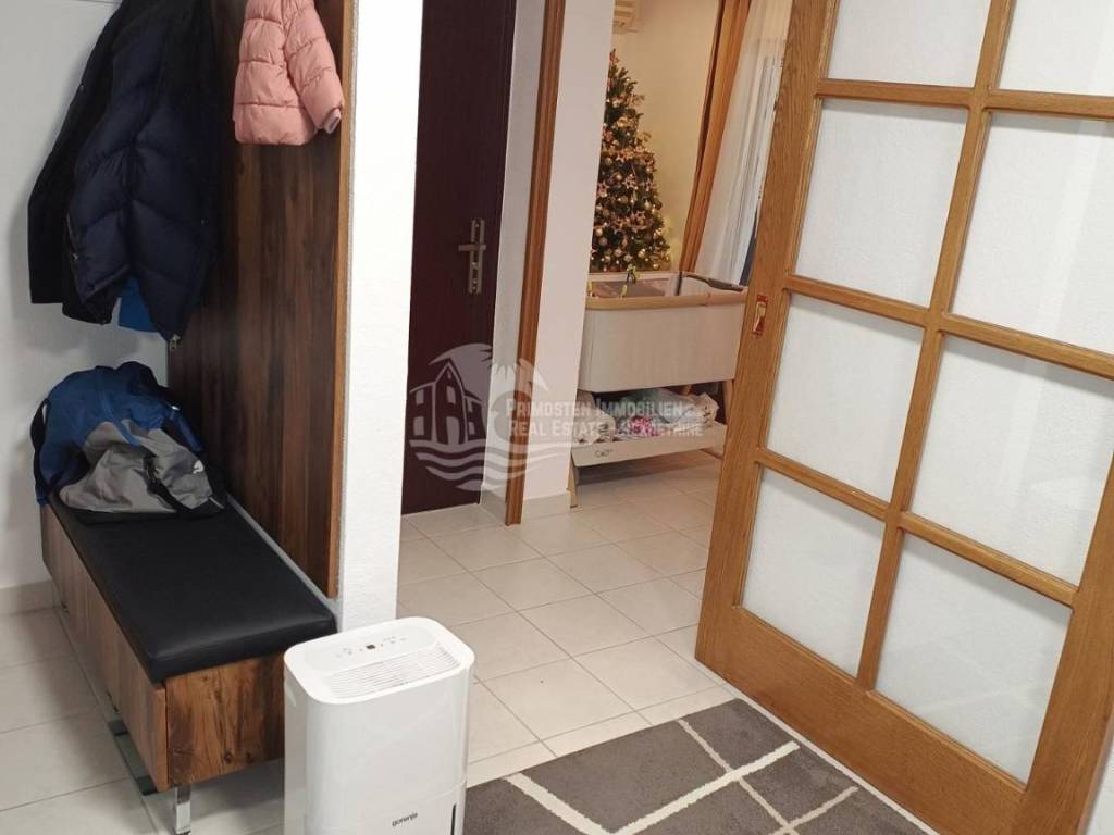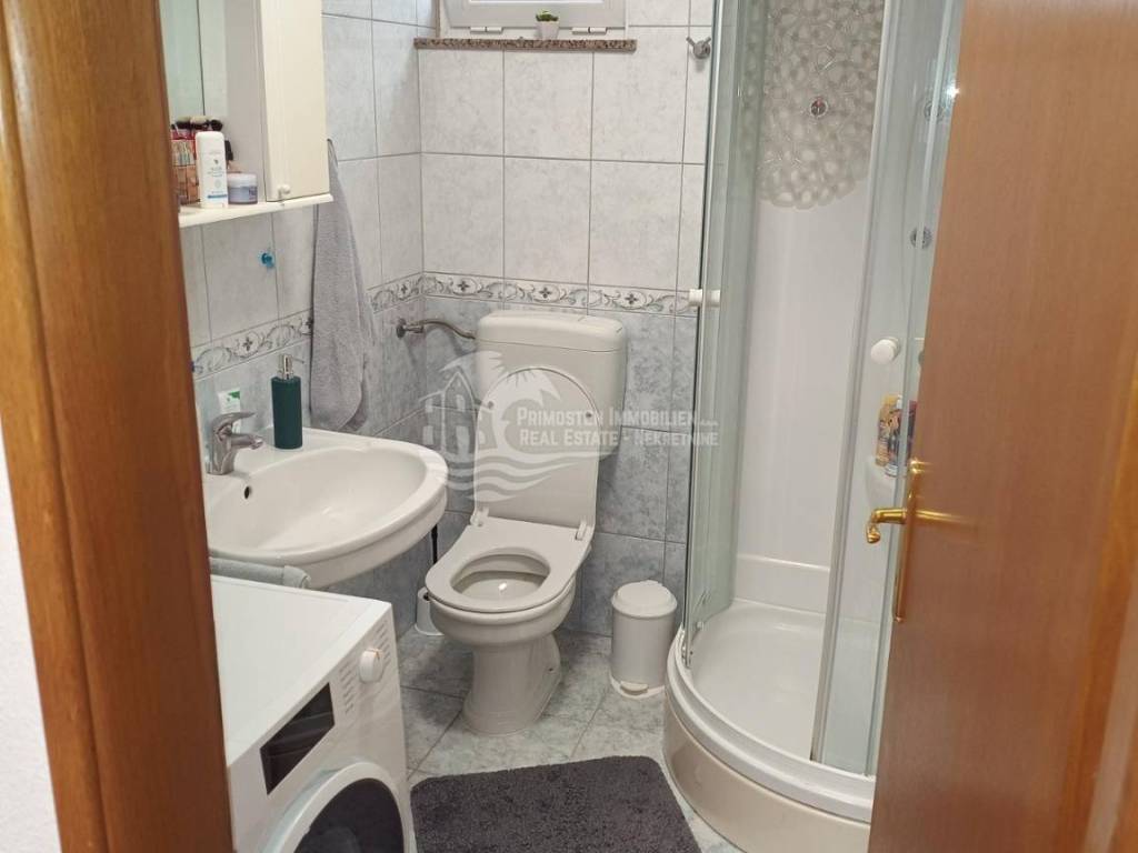 In an extremely attractive location, only 200m from the famous beach in Okrug Gornji, with excellent access road, we are selling a comfortable three-bedroom apartment. The apartment is located in a smaller, recently built residential building. The living area of the apartment is 70 m2 plus a covered terrace of 5m2. The attached garden with a total area of 161m2 provides the owner with complete intimacy and privacy, and enormous possibilities for decoration. Along with the apartment, a garage with a total area of 76m2 is also being sold. The garden is maintained and cultivated, and the apartment is being sold fully furnished.