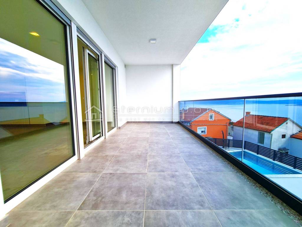 It consists of a bathroom, two bedrooms, kitchen and dining room and a spacious living room with access to a beautiful covered terrace with a panoramic view of the sea, the city and the island of Krk!