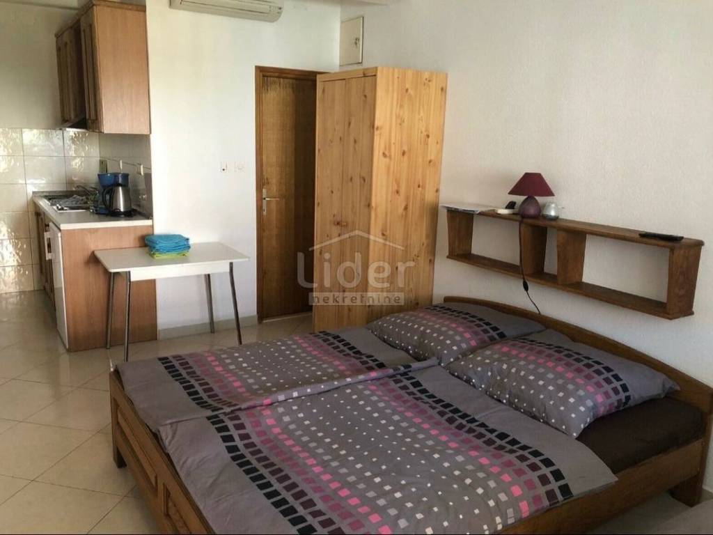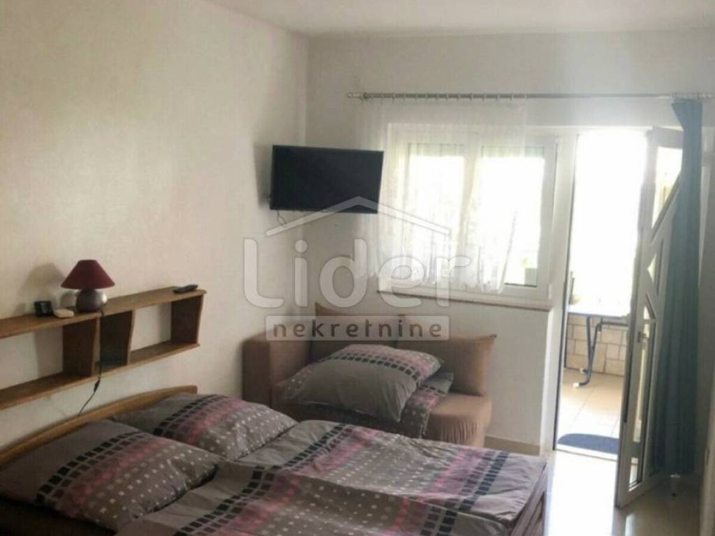 A house is for sale in Lopar on the island of Rab. The house consists of 8 apartments designed for tourism. It is located 100 meters from the sandy beach. It consists of three two-room apartments with their own terraces and 5 one-room apartments. On the roof of the house there is a terrace of 100 m2 with a beautiful view of the beach. There you can build a garden house with a barbecue, a jacuzzi, a space for socializing... The house also has an additional plot of 300 m2 that is used for parking and there is also a storage room.