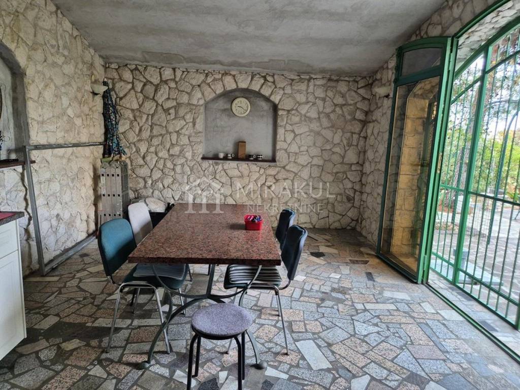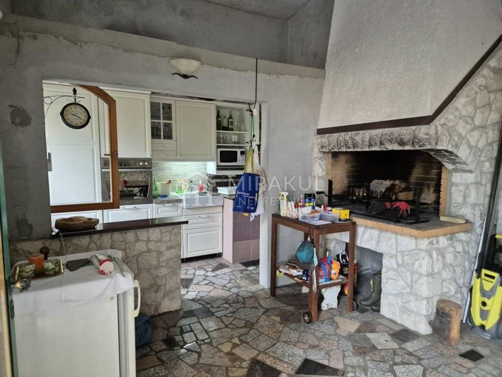 In the additional building, i.e. the stone house, there is a hallway, two storage rooms, a summer kitchen, a dining room, a barbecue, and a staircase.