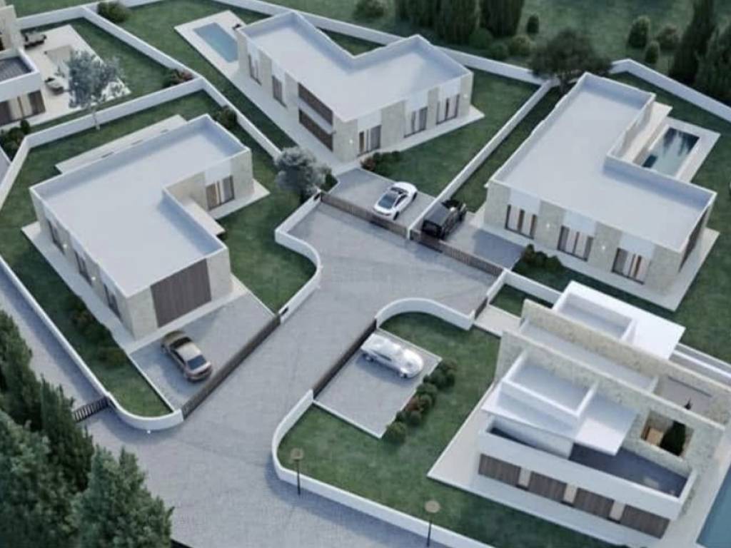 Projekt predviđa gradnju 5 kuća kako se vidi i na slikama a zemljišta su veličine 707 m2, 678 m2, 617 m2, 758 m2, i 616 m2.