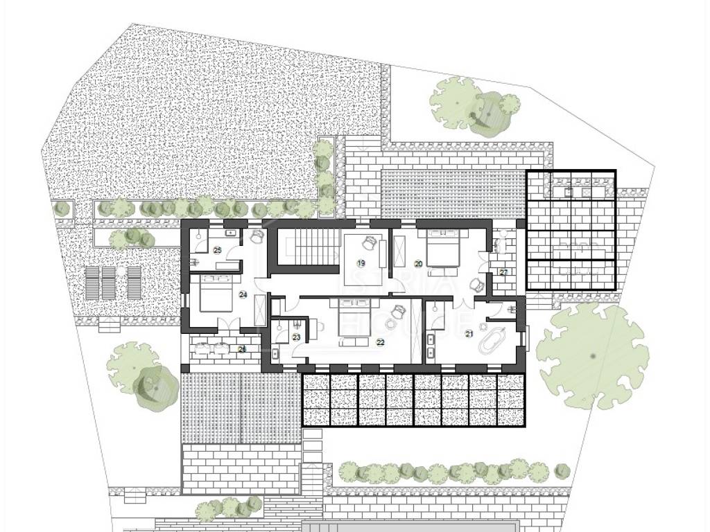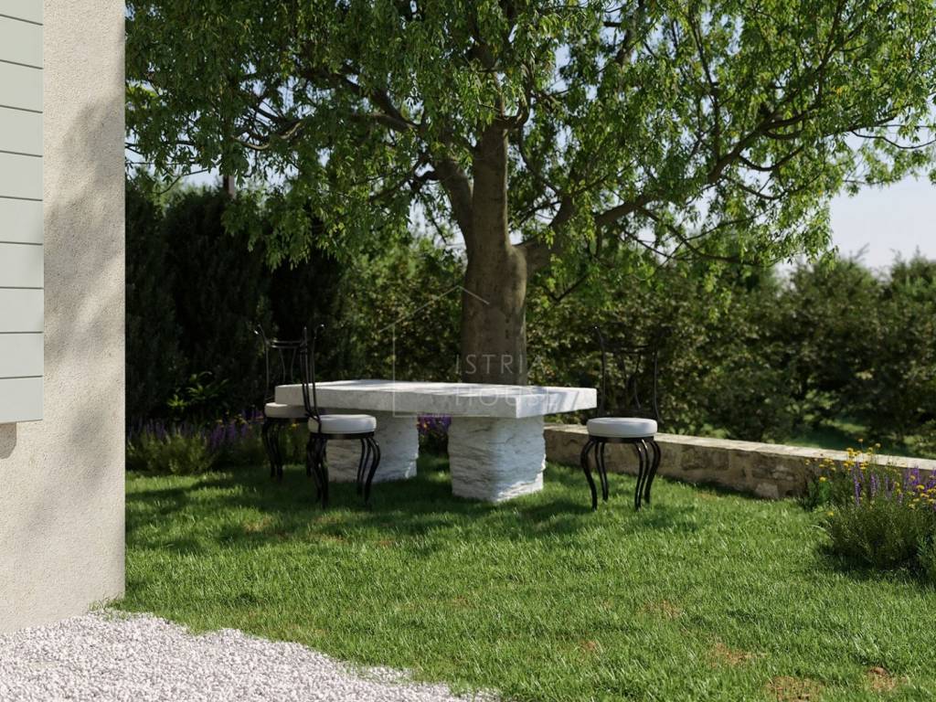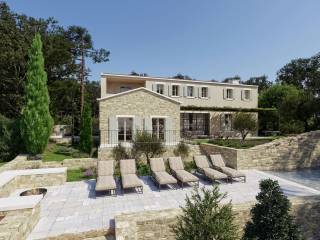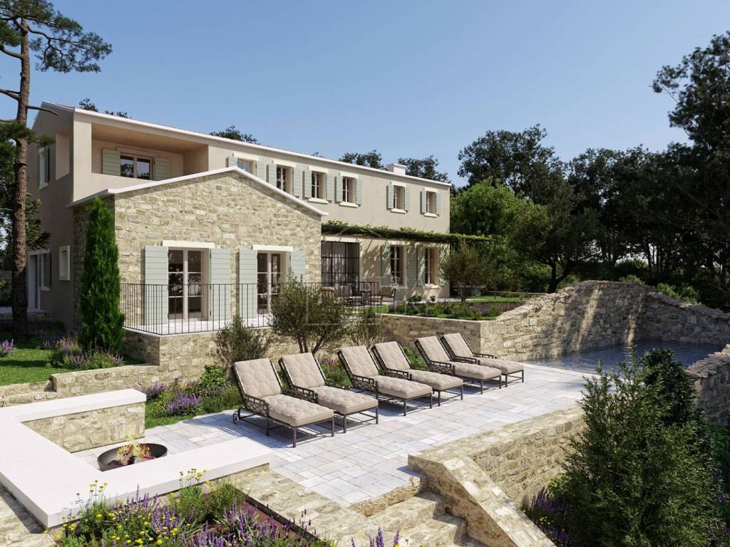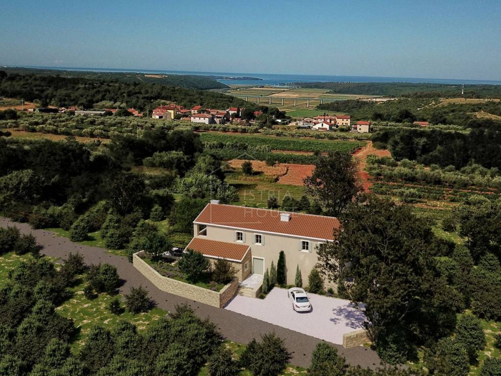 A new stone villa under construction with a beautiful panoramic sea view is for sale. The house is located in a quiet location on top of a hill on the edge of the construction zone which makes the location very desirable. The total area of the property is 270 m2, and the house is divided into ground floor and first floor. The ground floor has a spacious living room with kitchen and dining area, one bedroom with bathroom, guest toilet, utility room, wellness and storage. On the first floor there are 3 bedrooms with 3 bathrooms and two exits to the terraces with an even better panoramic view. In the courtyard there is a unique swimming pool, a spacious lounge area and a summer kitchen. The house is equipped with a modern underfloor heating system and air conditioning. The planned completion of the property is the summer of 2023. The nearest sea and beaches are in Novigrad at a distance of about 10 km.