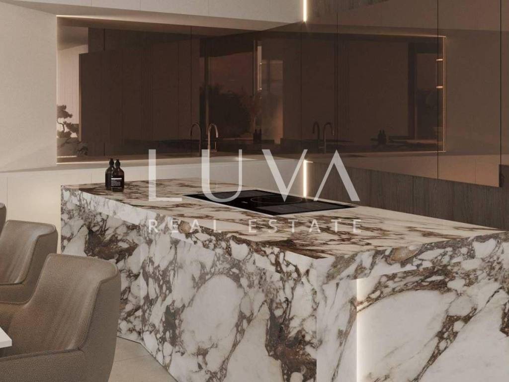 A luxury villa under construction on the east coast of Istria, in the small quiet town of Načinovići, is for sale. The villa will be located near the sea, on an elevated part with a wonderful panoramic view of the sea. The project includes the construction of 3 identical villas, so there is a possibility of buying all 3 villas together or just 1. The villas will spread over 3 floors with 390 m2 gross area, 307 m2 net area, and each will be located on a plot of land with an area of 800 m2. Each villa will have 3 bedrooms with their own bathrooms, an additional multifunctional room, a garage and a 50m2 swimming pool. Heating and cooling will be through Bosh heat pumps. On the ground floor there will be 2 bedrooms with private bathrooms, a machine room, a laundry room and a large terrace. On the first floor there will be a bedroom with its own bathroom, a multifunctional room and a garage for 2 cars. On the second floor, there will be a spacious living room, a kitchen, a large terrace and an outdoor pool. The expected start of construction is October 2024, and the end of 2025.