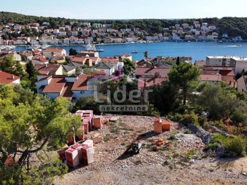 Zemljište je pripremljeno za gradnju, pravilnog oblika i poravnano, orijentirano prema zapadu prema uvali grada Mali Lošinj.