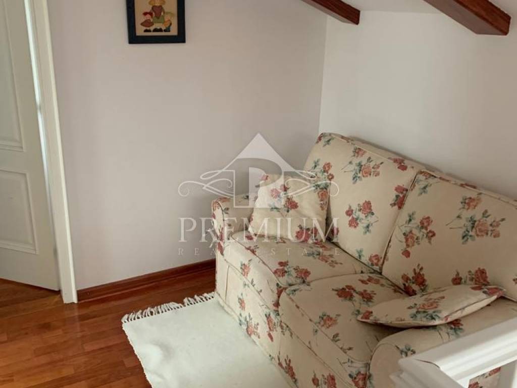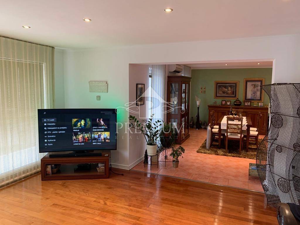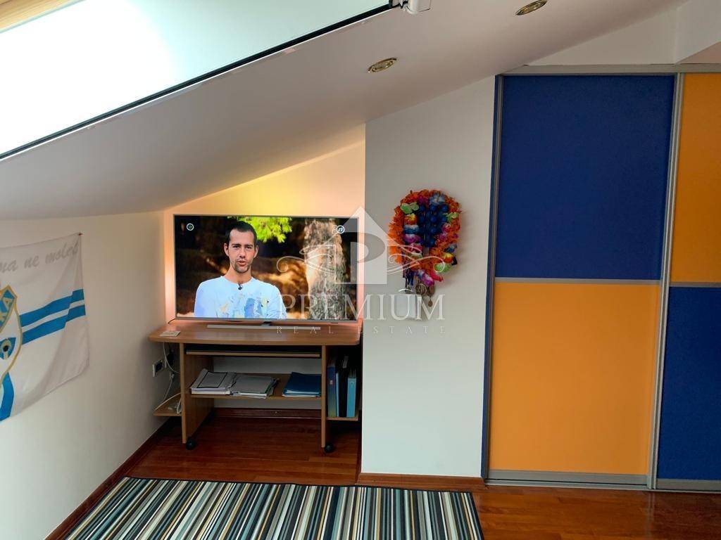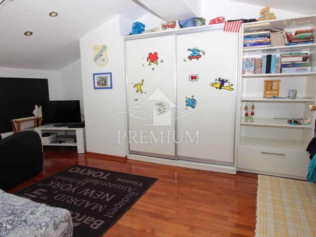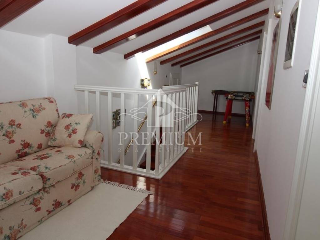 We offer a very modern, two-story, four-room apartment located in a small residential building in a peaceful and quiet location. In the title deed, the area of ​​the apartment is 296.39 m2, and according to the calculation of the coefficient, it is 235 m2. The lower floor consists of a hallway, spacious living room, dining room and kitchen, as well as two bedrooms, two large bathrooms, loggia and terrace. An internal staircase leads to the upper floor, which consists of a gallery, two bedrooms (children's) and a large bathroom. The lower part of the attic is used for large storage.
