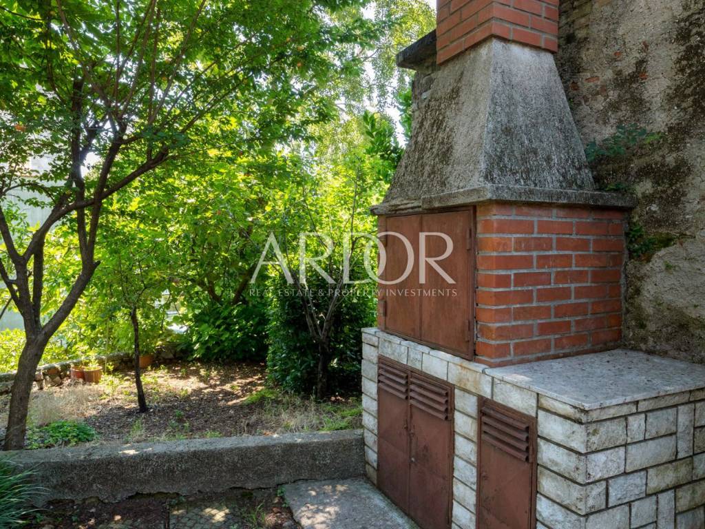 The property opens onto a paved terrace with a barbecue, covered with thick wickerwork, and onto a part with a garden and an orchard.