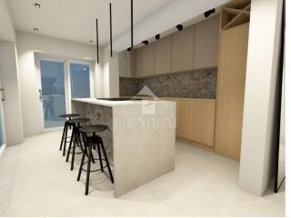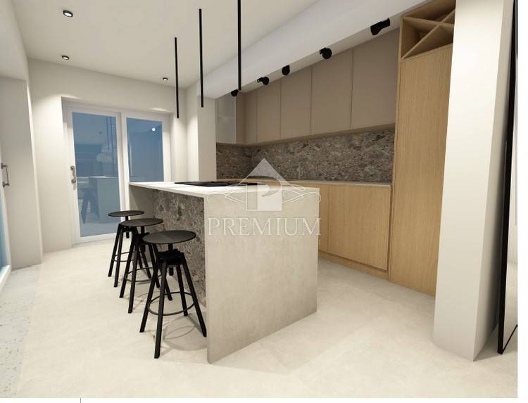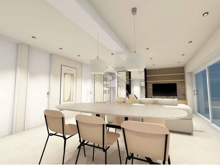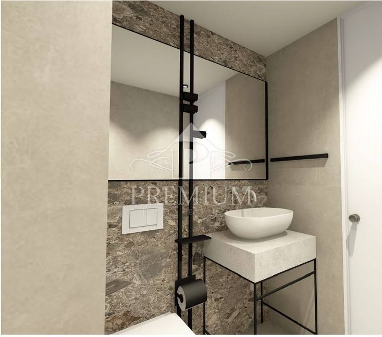 The images above are renderings only and actual furniture and materials may vary. The apartment and garden are currently in the phase of complete renovation and should be completed by spring 2023. The apartment consists of a hallway, wardrobe, kitchen with dining room, spacious living room, two bedrooms, two bathrooms and a terrace.