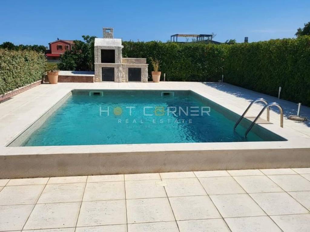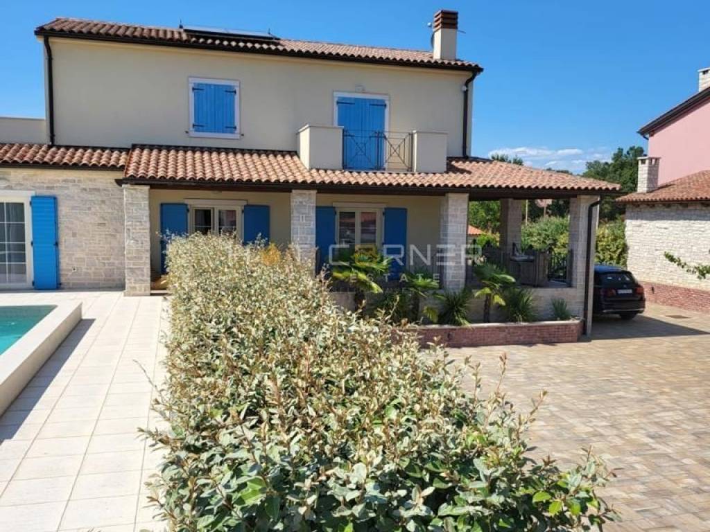 This beautiful villa with swimming pool, sauna and jacuzzi is located in the small and quiet town of Rebići, not far from Barban. In addition to the enviable location, the view of the sea, from which it is only 2 km away, certainly makes this villa special. Thanks to its quiet location, this villa guarantees its owners complete privacy and is suitable for both family vacations and rentals. The villa is spatially intended for 8 people, and consists of a basement, ground floor and first floor. On the ground floor there is a living room with a beautiful fireplace, a separate bathroom and one bedroom with a bathroom. Next to the living room there is a dining room and a modern kitchen. On the upper floor there are two bedrooms with bathrooms and two spacious terraces with an idyllic view of the sea. In the basement there is another bedroom with a bathroom. On the outdoor terrace there is a swimming pool with a size of 24 m2 and a depth of 1.3 m. There is a barbecue in the landscaped yard, and a jacuzzi and charcoal or wood grill on the covered terrace. The mentioned property has built-in underfloor heating throughout the house and air conditioners that guarantee your comfort regardless of the season. The property is sold fully furnished with all the associated household appliances.