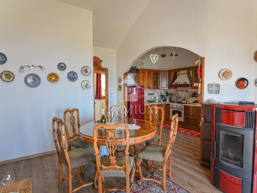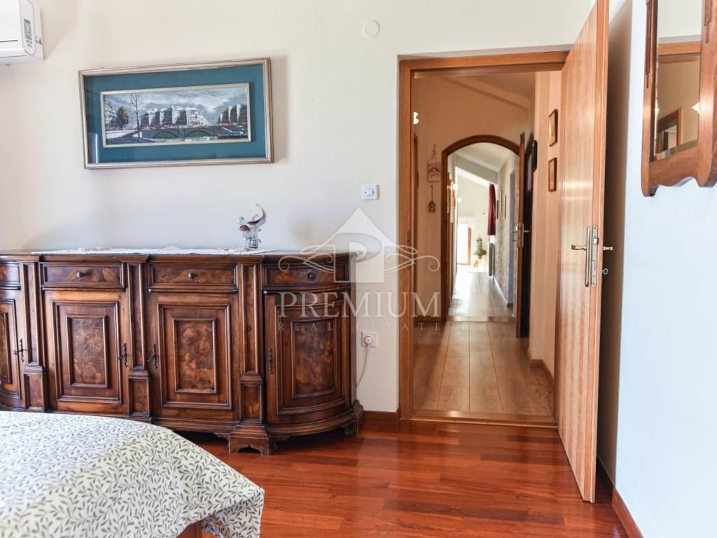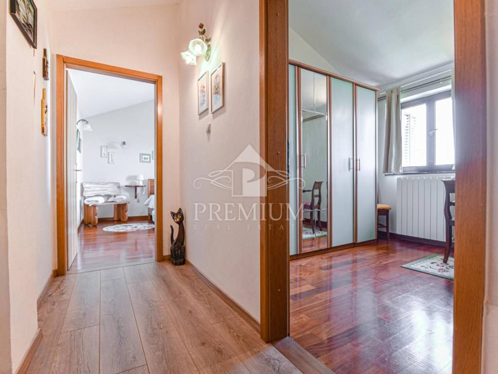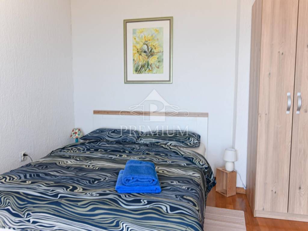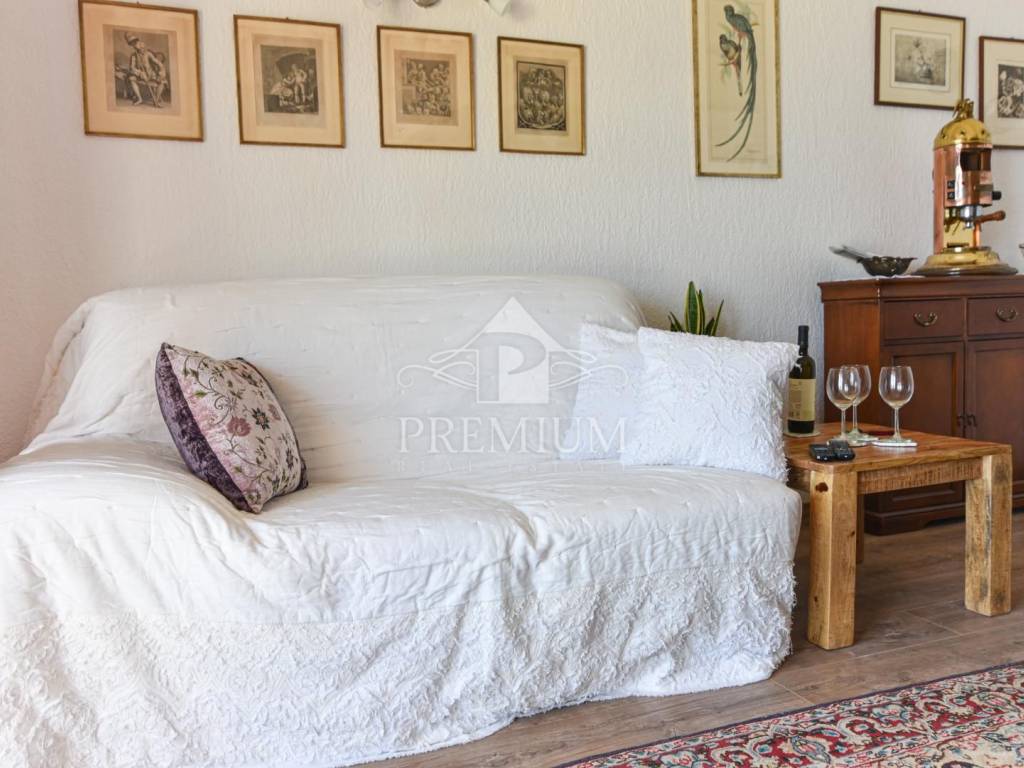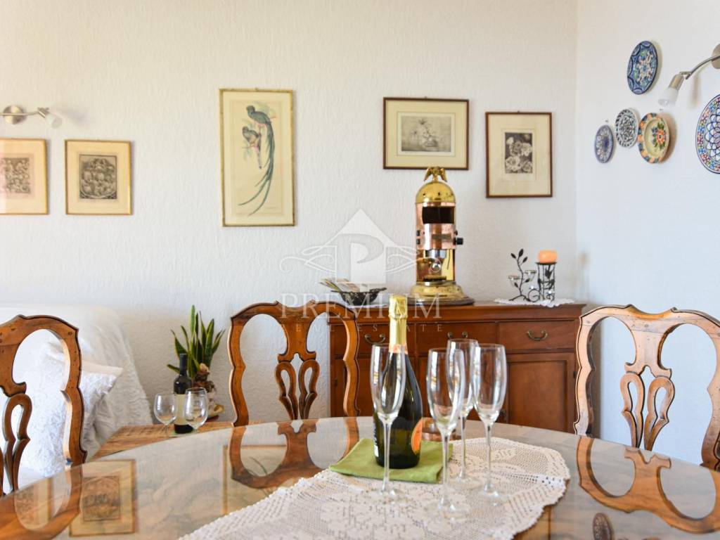 Positioned on the first floor with two balconies offering a unique view of the sea. It consists of three bedrooms, living room, kitchen, dining room and bathroom. It is over 97 m2 in size, and with balconies, a tavern and space in the attic, it has over 121 m2.