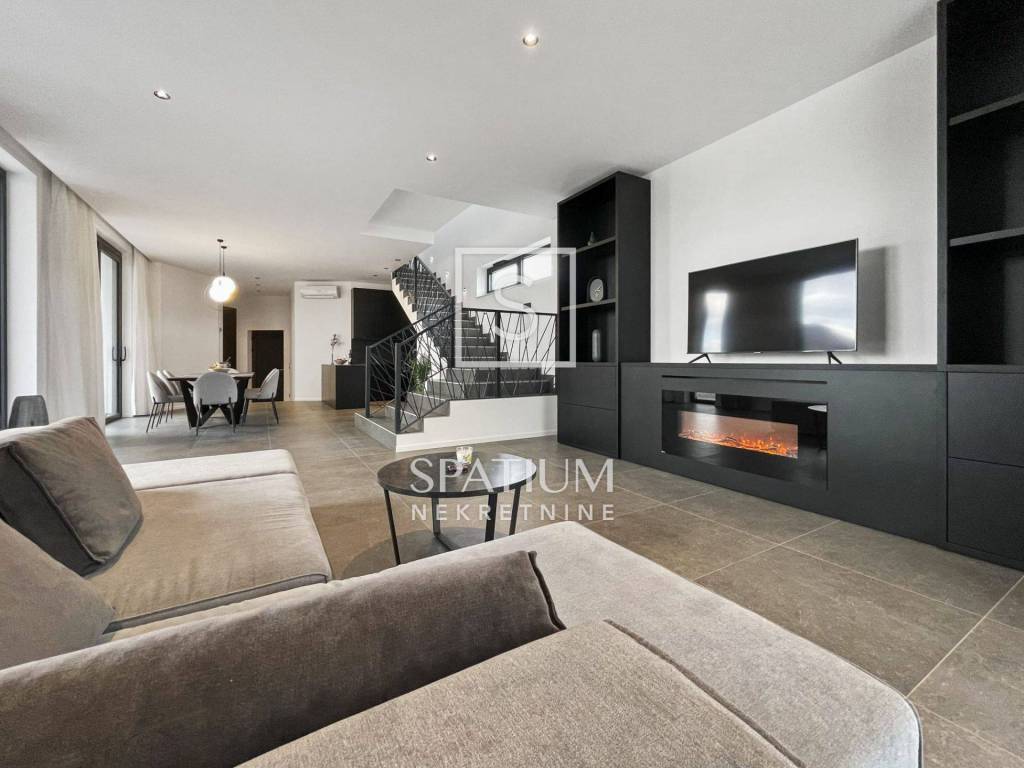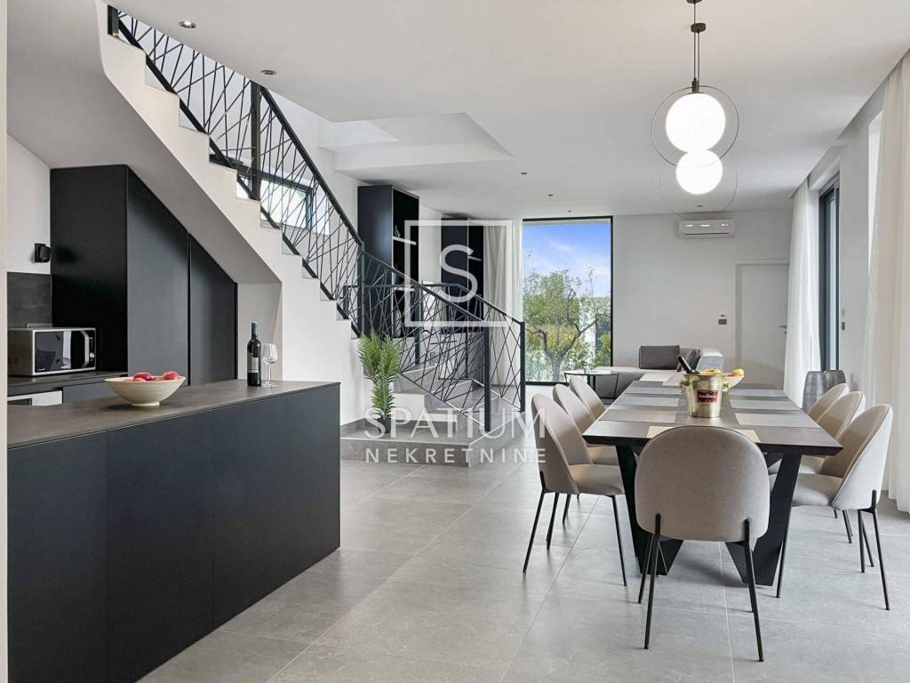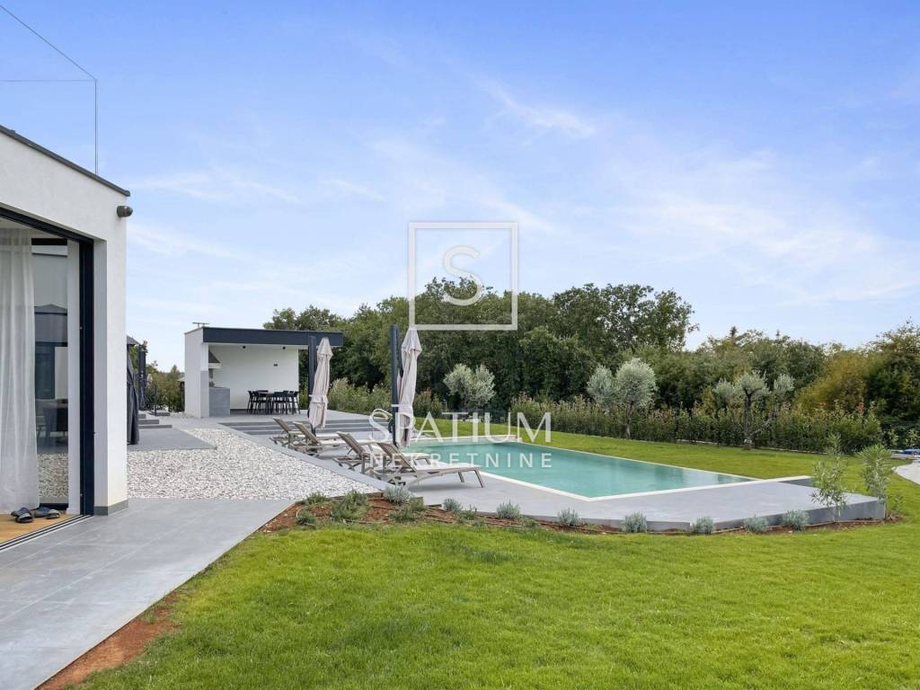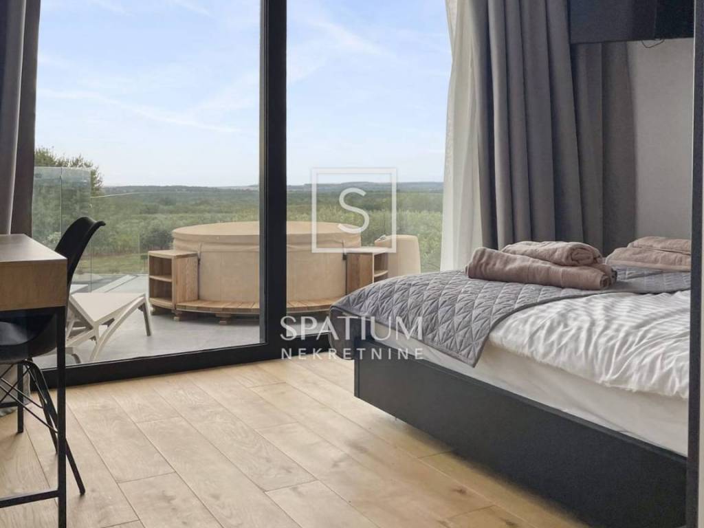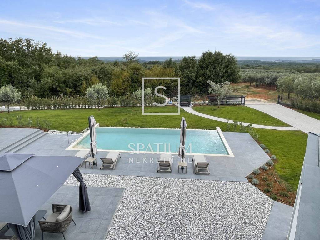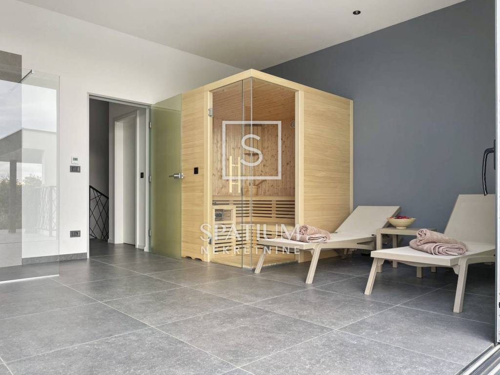 KAŠTELIR, we are offering a beautiful modern new building with a sea view, total area 306m2. The ground floor consists of an open space kitchen, dining room and living room dominated by large glass walls that provide a lot of natural light, a bedroom with its own bathroom, a guest toilet and a wellness area with a sauna and a toilet. Already from the ground floor there is a wonderful view of the sea and the surrounding nature. From the living room there is a terrace with a heated pool of 50 m2. An internal staircase leads to the first floor where there are three spacious bedrooms, each of which has its own bathroom and exit to the terrace where there is a jacuzzi. In the basement there is a multipurpose space that can be used as a gym, home theater or playroom. In the landscaped garden, next to the heated swimming pool, there is also a sunbathing area, as well as an outdoor kitchen with a dining area. Underfloor heating is installed in all rooms, as well as air conditioning. KAŠTELIR - LABINCI On the west coast of Istria, surrounded by lush Mediterranean vegetation that blends with olive groves, vineyards and fields, is the Municipality of Kaštelir-Labinci. Two places - Kaštelir and Labinci, tal. Castelier - S. Domenica, were gradually urbanized over the centuries, which resulted in their convergence, so that today they form one place, located ten kilometers north of Poreč. For other information, please feel free to contact us. Sanjin Latinčić +385 91 28 99 599 sanjin@spatium.hr Spatium nekretnine +385 51 272 903 info@spatium.hr