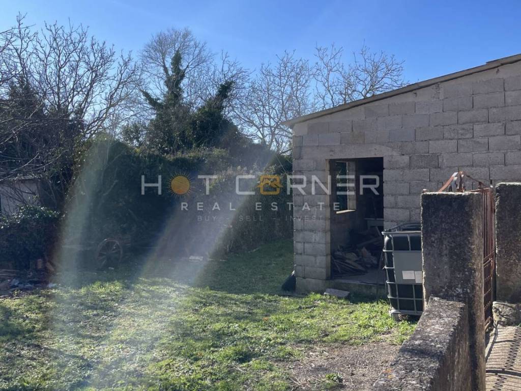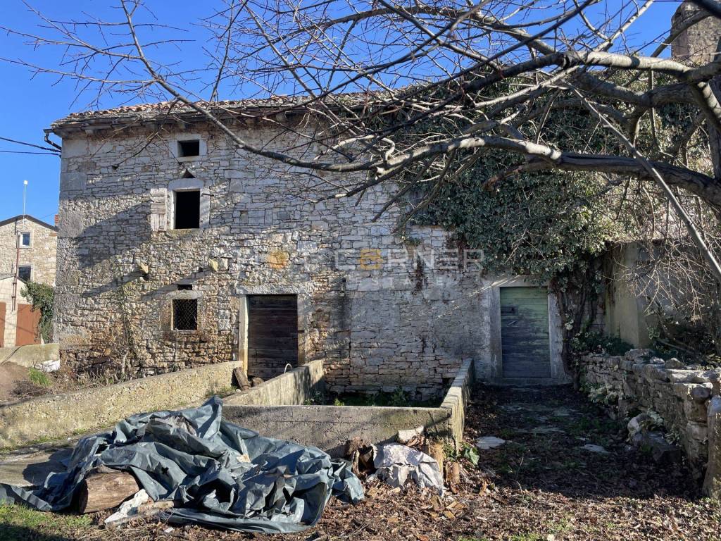 For sale, an old Istrian row house in the village of Filipana with a floor area of about 75m2, a yard of about 300m2, and a garage/cellar of about 45m2. The house requires complete renovation to create a living space on 2 floors with a total area of about 150m2. In front of the house, there is enough space for a covered terrace and a pool. The house is located along an asphalt road with direct access to the public asphalt road. Water and electricity infrastructure is right next to the house. The external walls of the house are completely stable and firm.