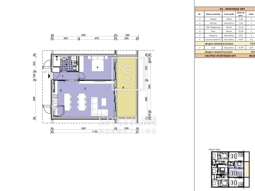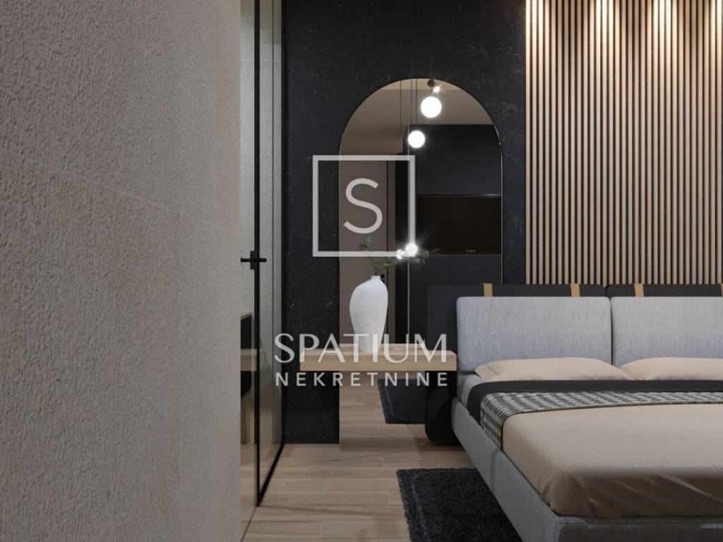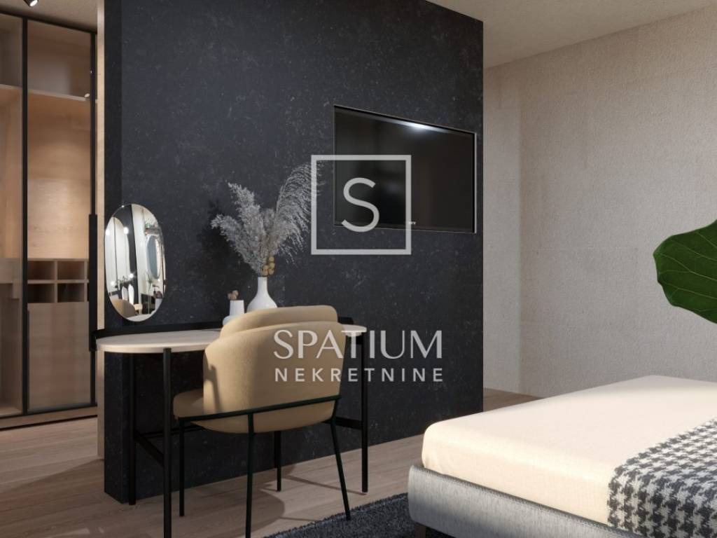 VOLOSKO, we have received an exclusive apartment with a total area of 89.90 m2 with a panoramic view of the sea. It is located on the first floor and consists of a comfortable bedroom, bathroom, hallway and "open space" living room with kitchen and dining room with access to a covered terrace. This modern new building stands out for its excellent room layout and high-quality construction (ALU carpentry, heat pumps, first-class floor coverings, video surveillance...) Tenants will also be able to use a common gym with a spa area. The apartment also comes with a garage parking space. At this stage of construction, there is a possibility to adjust the interior according to your own wishes. Completion of the works is scheduled for the end of 2025.