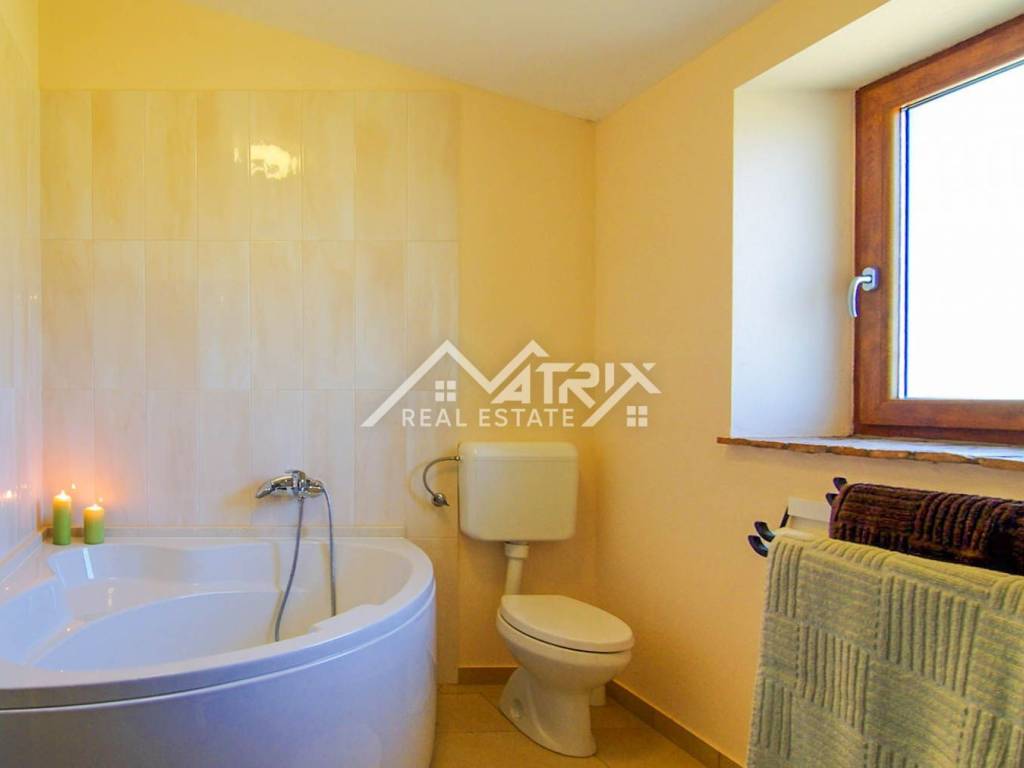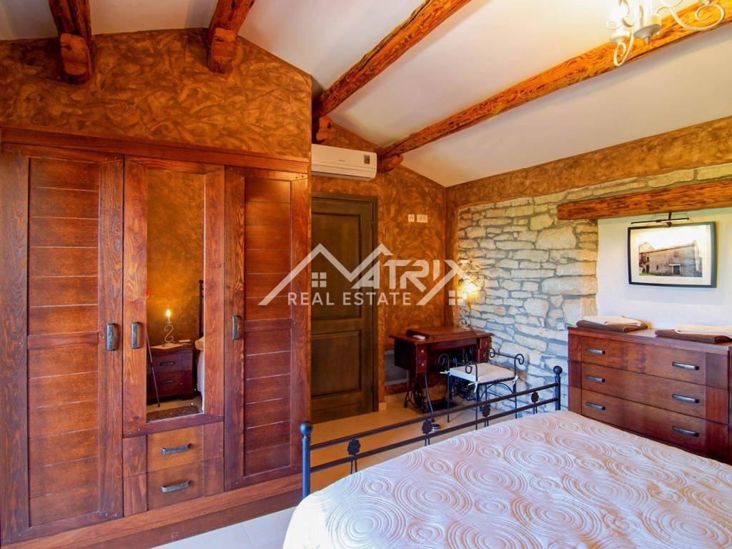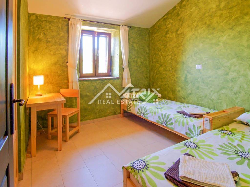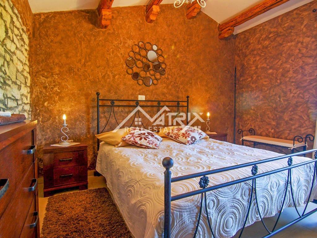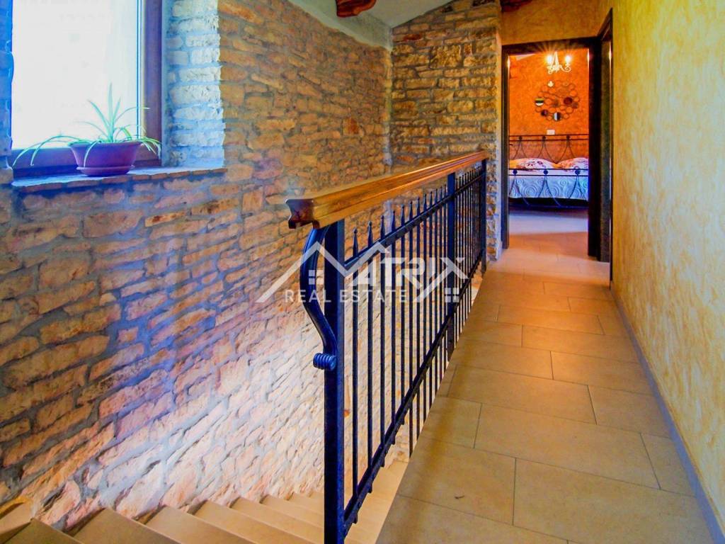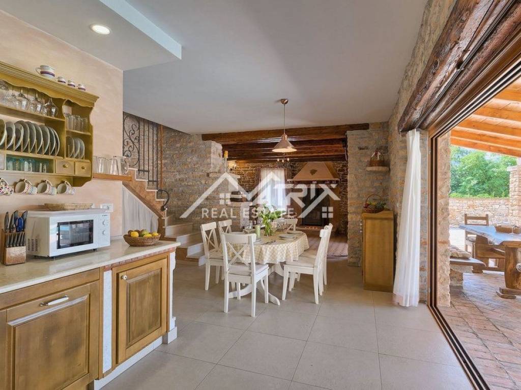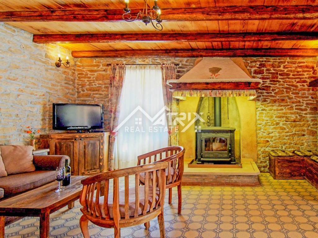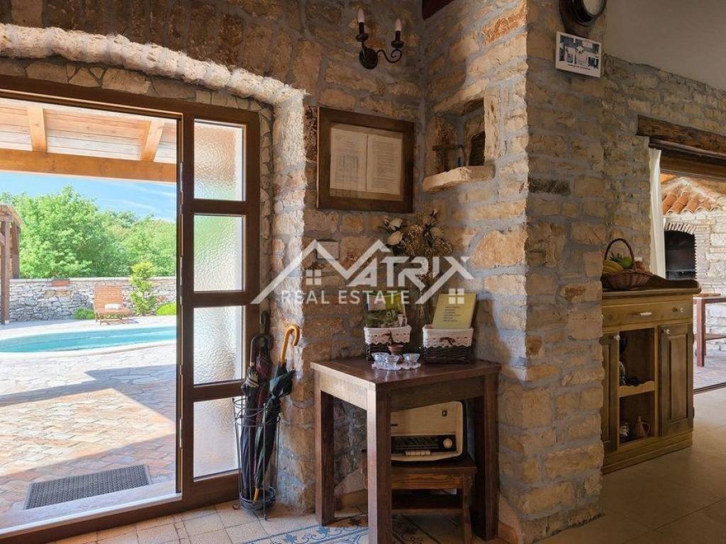 This beautiful stone villa with a swimming pool is for sale, fully equipped and furnished, with a total living area of 150 m2. The house is located in a quiet settlement on the very edge of the construction zone, offering a beautiful open view of nature. The house is very successfully rented during the summer months, and it is also the winner of the ECO certificate due to its own solar power plant and minimal electricity costs.