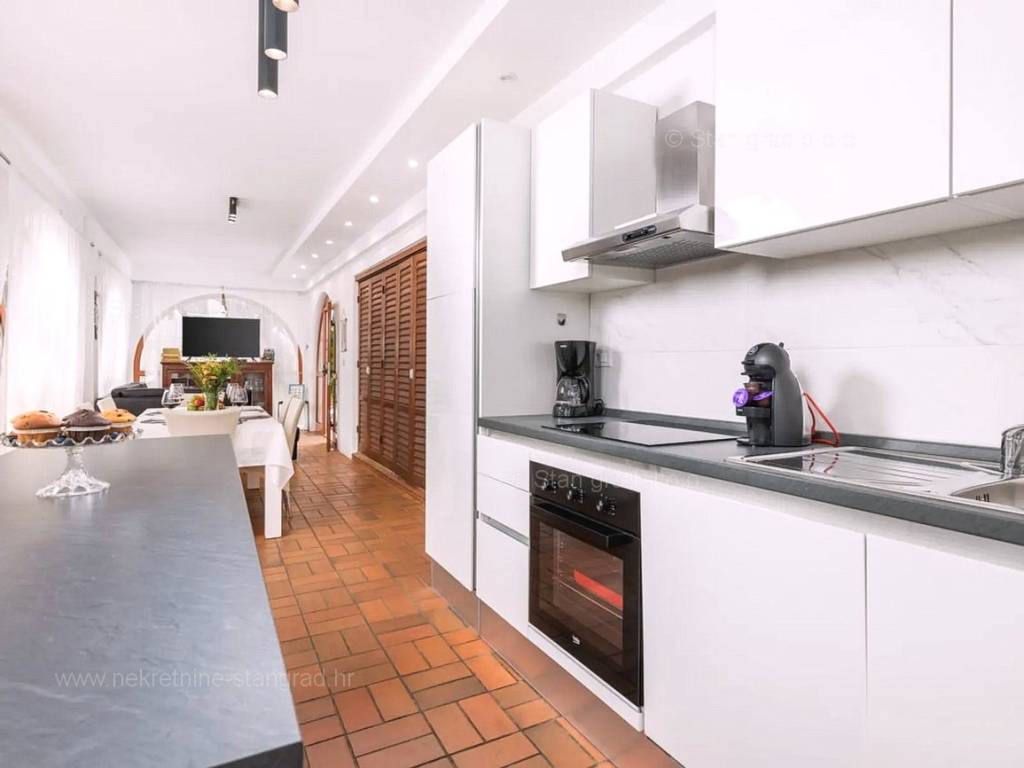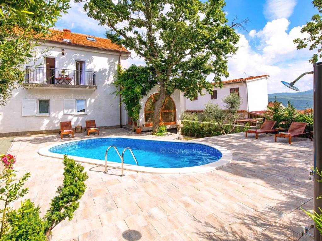 Among the excellent real estate offered by our agency in the northern Adriatic, a modern house for tourism built on the sought-after Croatian and Kvarner coastal region, the island of Krk, stands out. This attractive property is located in an outstanding location near the town of Krk. Structurally speaking, this is a single-story house with a high attic. The extremely attractive building consists of a total of 3 floors. The house was built as a single-family building. The property covers a total area of ​​270 m2. This area includes the entrance hall, bathroom, kitchen with dining room, living room with access to the terrace and a spacious garden on the ground floor. On the first floor of the property, there are 4 bedrooms, two of which have access to the terrace, and two to the balcony and a bathroom. There are 2 bedrooms and a bathroom in the high attic. The interior of the property is very well maintained and fully equipped with all necessary technical devices and quality furniture. The property has a well-kept garden with a swimming pool, garden house, summer kitchen and garage. The spacious garden of the described property is equipped with comfortable parking for several vehicles. In addition to the above, it should be noted that the house has a beautiful view of this seaside place. This real estate is owned by a natural person and in the name of its transfer, the buyer of the house is obliged to pay real estate sales tax in the amount of 3%. The seller of the real estate guarantees proper construction and ownership documentation and a quick transfer of the real estate to the name of the buyer. We sincerely look forward to your call or personal visit to our office on the island of Krk. In addition to the search and presentation of the ideal property for you, our brokerage office will assist you in the transfer of utility bills and the registration of the ownership of the house.