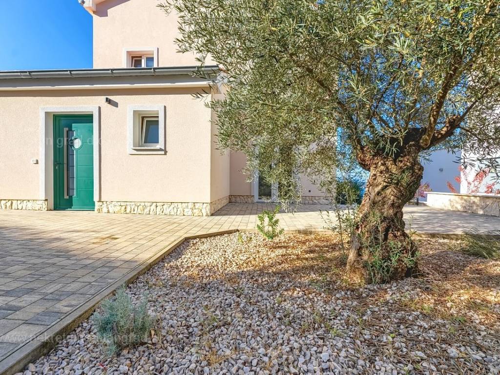 The house has a spacious yard and a terrace with a sea view. In the front part of the house, on the ground floor, there is a studio apartment consisting of one room and a bathroom. Next to the studio, there is a boiler room of 5 m2. The house is equipped with underfloor heating, and a heat pump is currently being installed. The yard is landscaped in a Mediterranean style, filled with Mediterranean plants. The spacious yard of the described property has been arranged for the comfortable parking of several vehicles. Additionally, it is worth mentioning that the house offers a beautiful panoramic view of the sea.