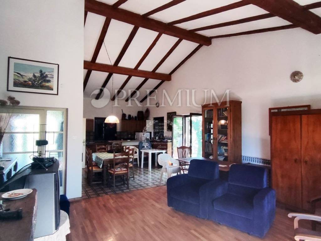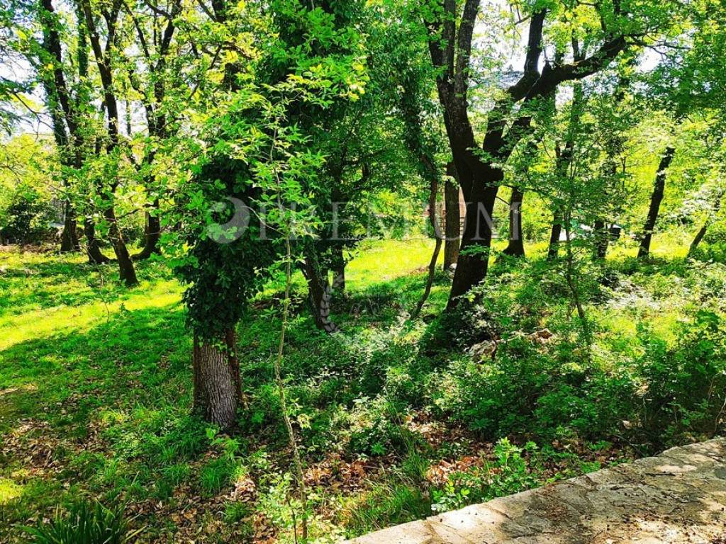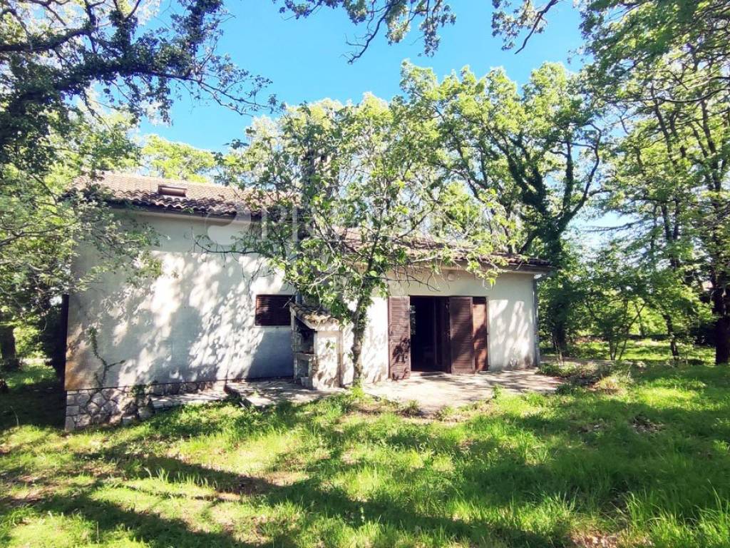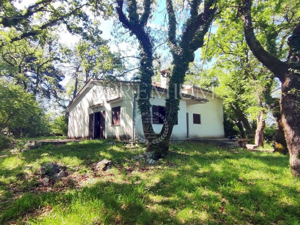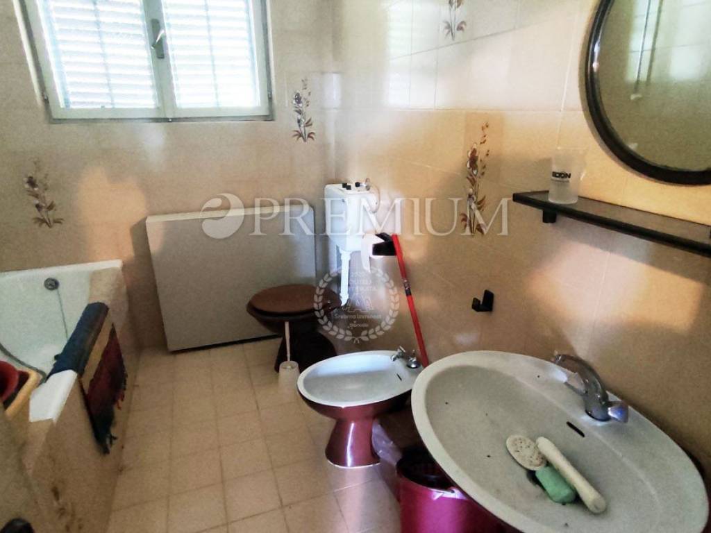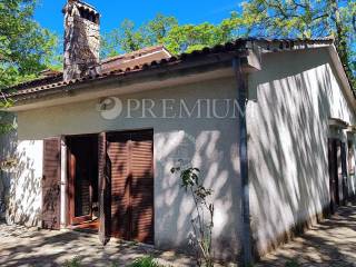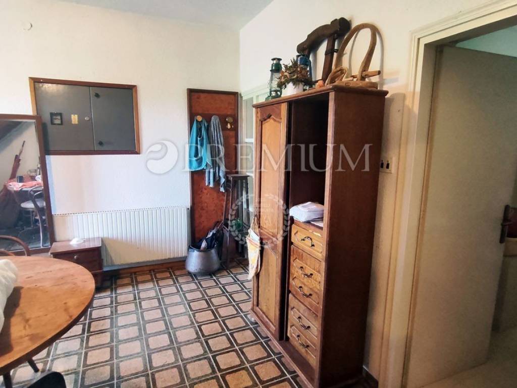 Island of Krk, Dobrinj, sale of a detached house with a garden of 2769 m2, an auxiliary facility of 23 m2, built in 1980. The house consists of a basement, ground floor, and first floor, with a total area of 139 m2. The basement features many stone details and can be an ideal place for a cellar. On the ground floor, there is an entrance hall, 2 bedrooms, a bathroom, an open space with a kitchen, dining area, and living room with a wood-burning fireplace. Additionally, there is access to the garden from the living area. On the first floor, there are 2 bedrooms, a bathroom, and a central heating boiler room. Wooden joinery with grilles, ceramic flooring, and parquet in the rooms are installed. The plot is of regular shape, fully fenced, and offers complete privacy. There is also the possibility of purchasing an olive grove, with an area of 600 m2.
