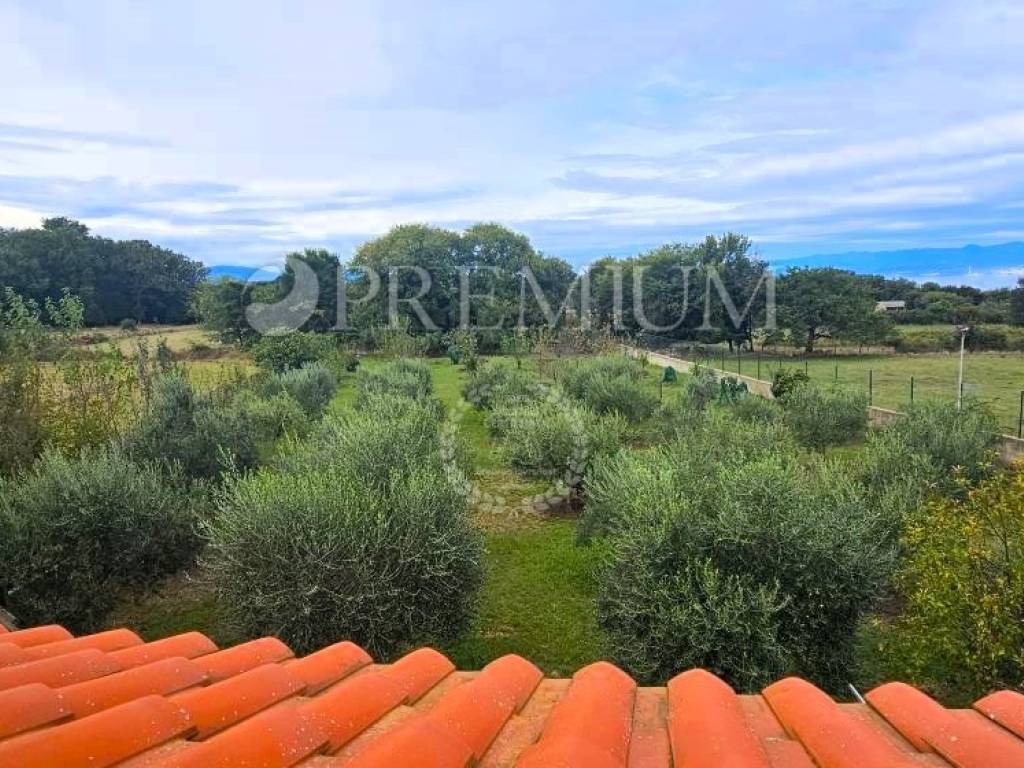 Okućnica je površine 2509 m2, uredno održavana. Na njoj se nalazi 50 održavanih maslina i voćnjak, te se pruža pogled na more.