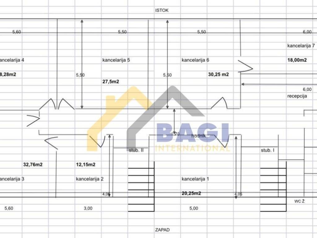Poslovni prostor sastoji se od 7 prostorija + recepcija i WC.