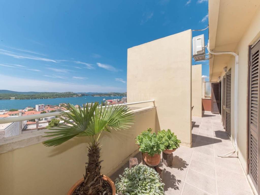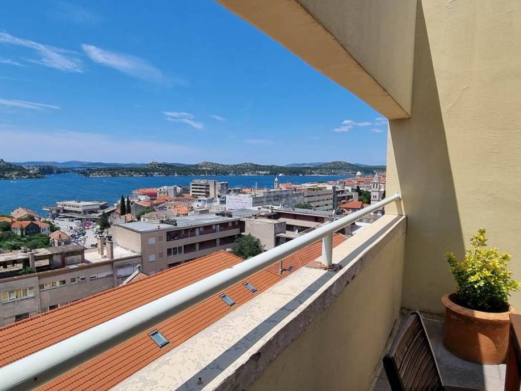 A beautiful apartment for sale in the very center of Šibenik. The apartment is furnished. It consists of a hallway, a guest toilet, a bathroom, three bedrooms, two of which have access to small balconies on the north side, while the third room on the south side has access to the main terrace. The kitchen and dining room are in one unit, as is the living room, and they also have access to a beautiful terrace with a view of the city and the Šibenik archipelago. The apartment is located near all facilities, it is spacious and ready to move into. A type of real estate that is rarely found on the real estate market in the city of Šibenik itself.