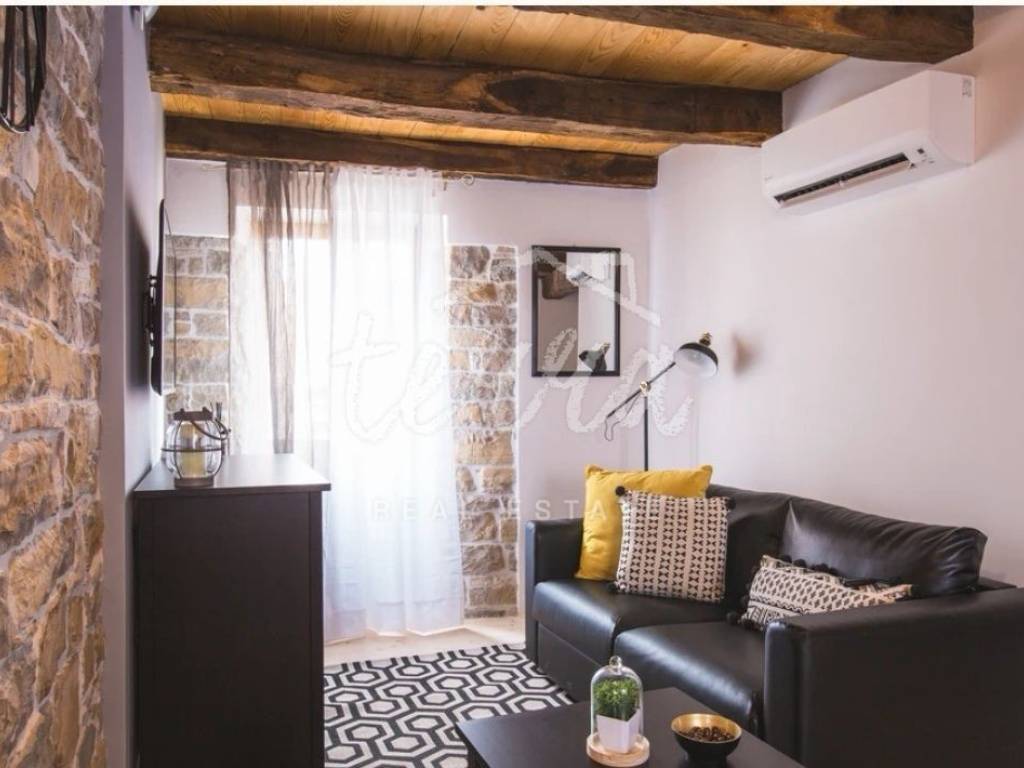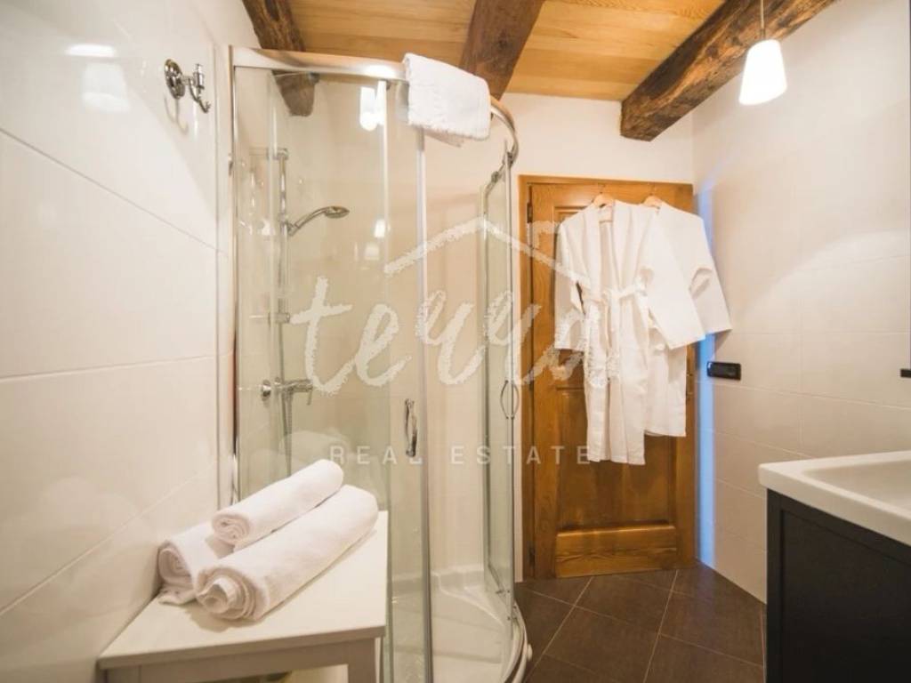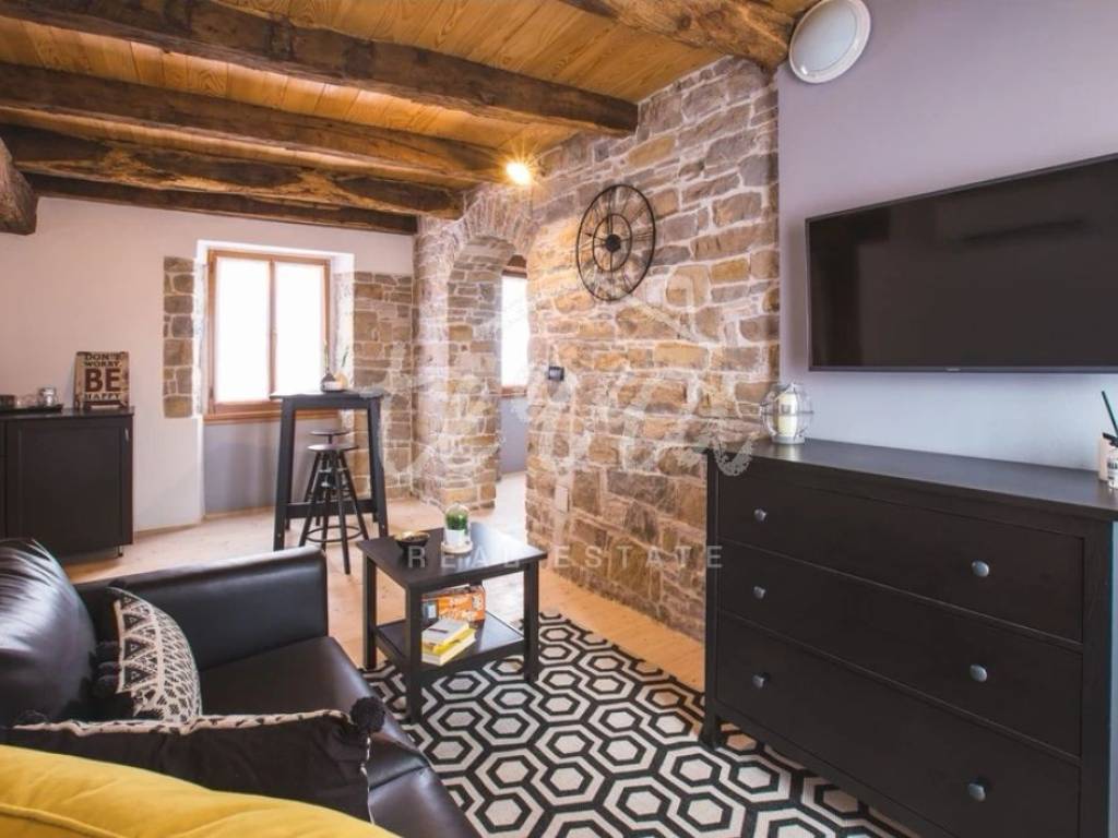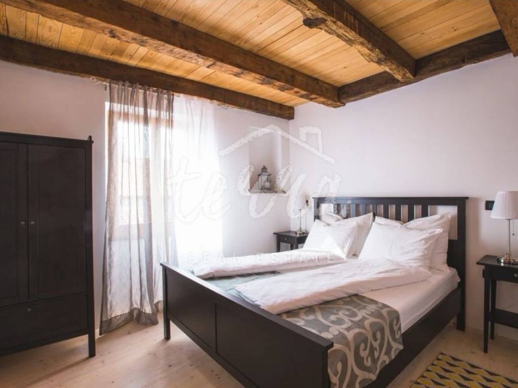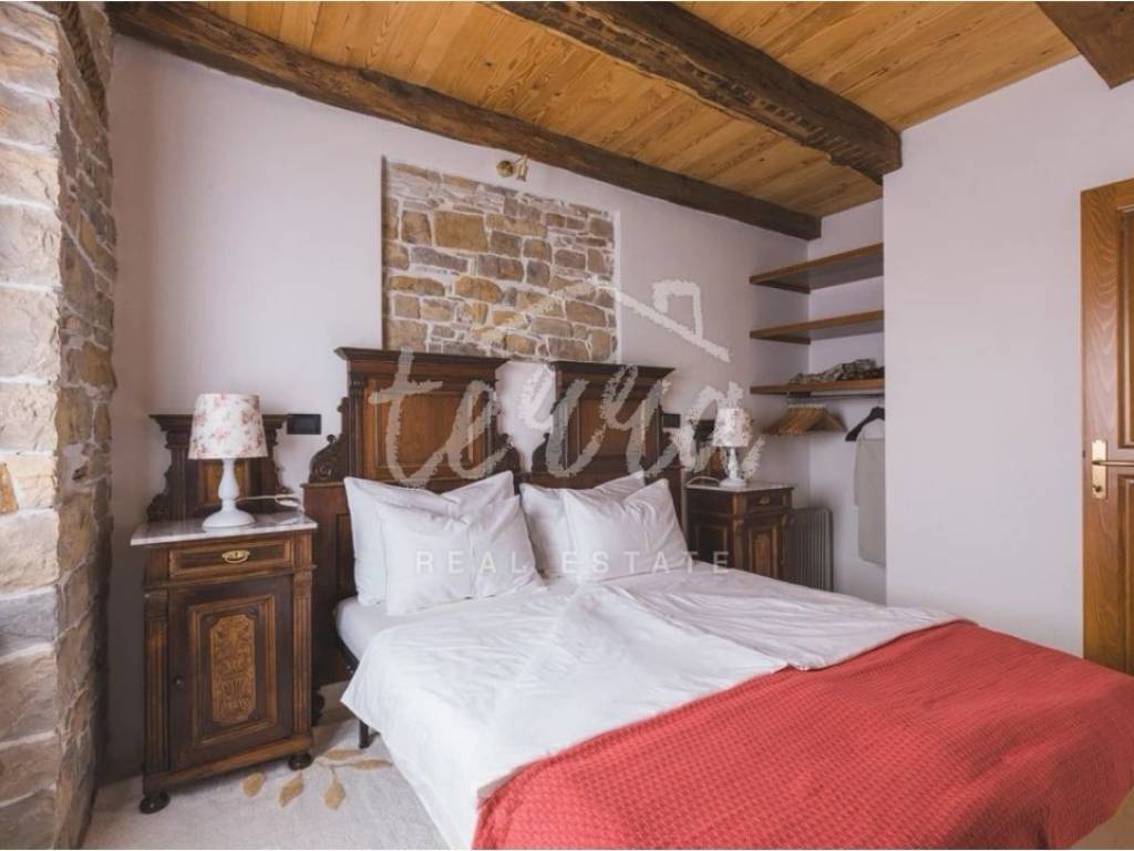 A beautiful and fully furnished house with two office spaces is located in the historical center of Oprtlje. The house is spread over three floors, on each there is an apartment with a separate entrance, the advantage is that each apartment can be used as a separate unit. The apartment consists of a living room, an open kitchen and dining room, a bedroom and a bathroom. The apartment at the top has a mansard with a library and a room for: rest-study-playroom... depending on what the owner wants. The house is entered by stone stairs, at the entrance there is a small hall and internal wooden stairs lead to each floor with a separate entrance to the apartment. Every detail was taken care of in the decoration of the apartment, which can be seen from the attached photos. There are two business spaces on the ground floor. This property offers numerous possibilities to the future buyer.