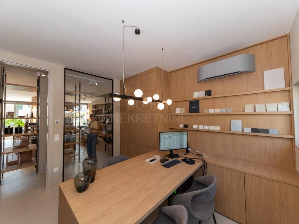 Na prodaju je potpuno namješten poslovni prostor u centru Vodica, ukupne neto korisne površine 93,08 m². Prostor se sastoji od prodajnog dijela, skladišta s mini kuhinjom, kupaonice i ureda. Vrhunski je uređen, funkcionalno organiziran i spreman za početak poslovanja bez dodatnih ulaganja.