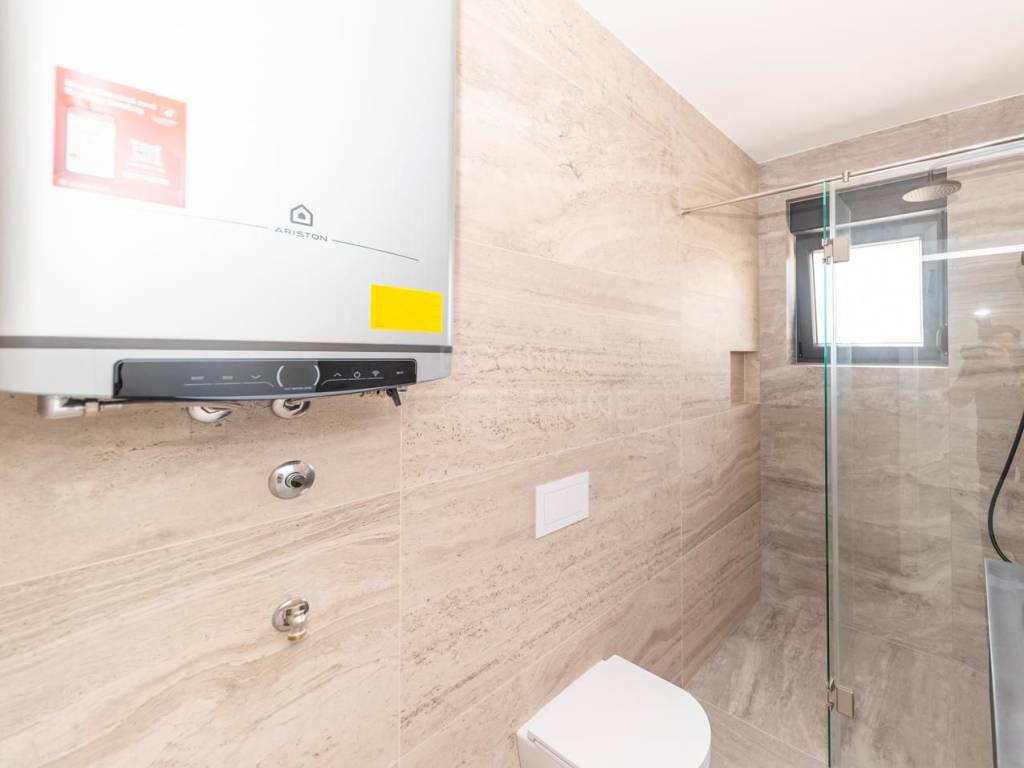 For sale is a two-bedroom apartment marked S2, located on the first floor of a modern residential building with a total of five apartments. The total usable area of the apartment is 63.53 m², of which 53.46 m² is living space. The apartment consists of two bedrooms, a bathroom, a kitchen with a dining room and a living room with access to a loggia. The apartment also has one parking space of 13.75 m². It is equipped with air conditioning, underfloor heating in the bathroom and living room, a video intercom, top-quality ceramics and sanitary equipment, electric roller shutters and mosquito nets on the windows.
