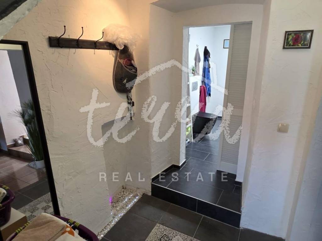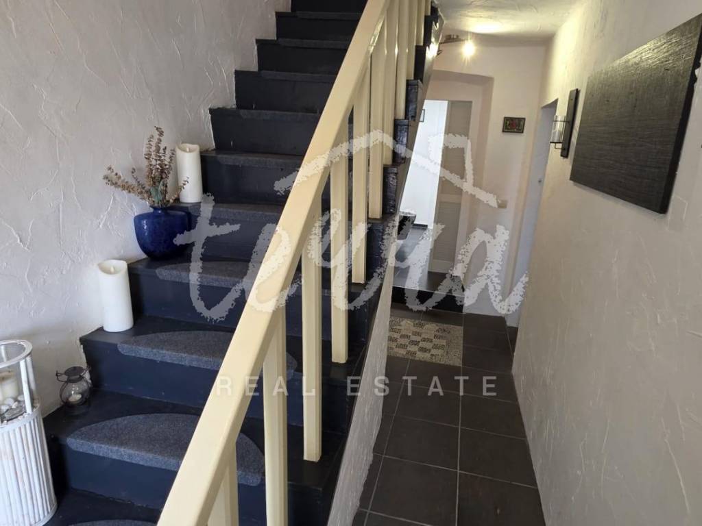 The house is spread over three floors. The ground floor includes a hallway, bathroom, living room, kitchen, and dining area – offering a functional and cozy layout. Internal stairs lead to the first floor, where there is one bedroom, and further up to the second floor where the second bedroom is located, ensuring privacy.