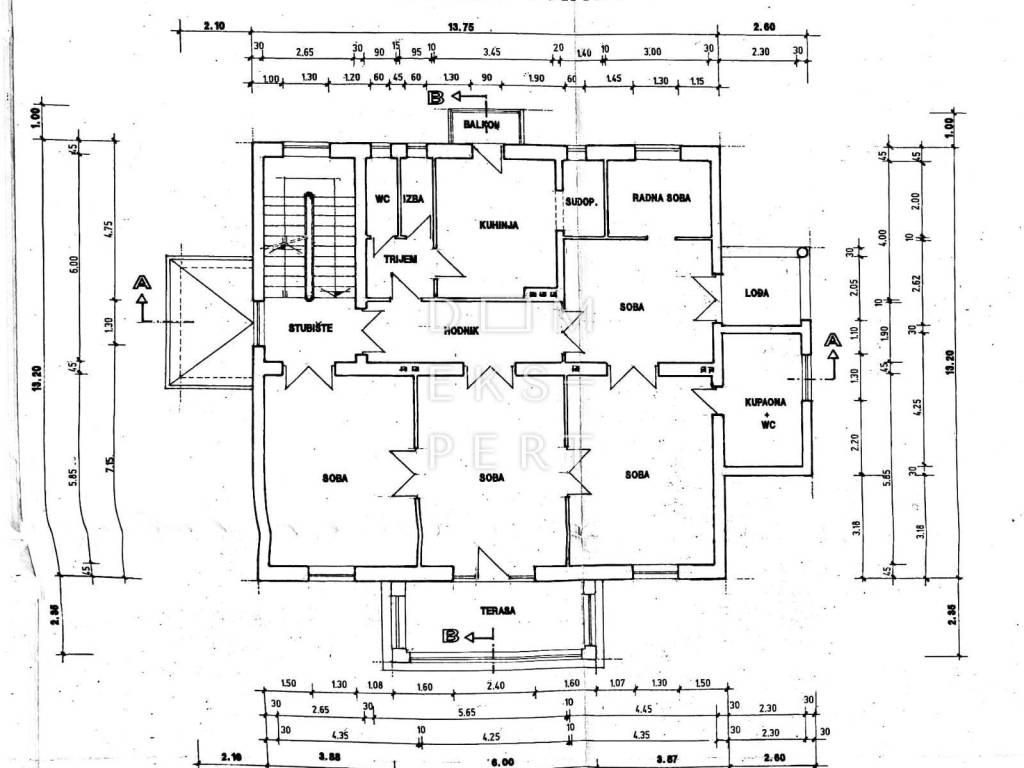 A house with a total area of 630 m² is for sale, situated on a 1,065 m² plot (entirely within a residential building zone). The house is structurally sound and well-built (thick walls, no earthquake damage) but requires complete renovation.