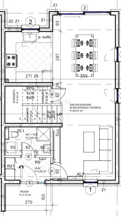 open-plan living room, dining area and kitchen (40.61 m²)