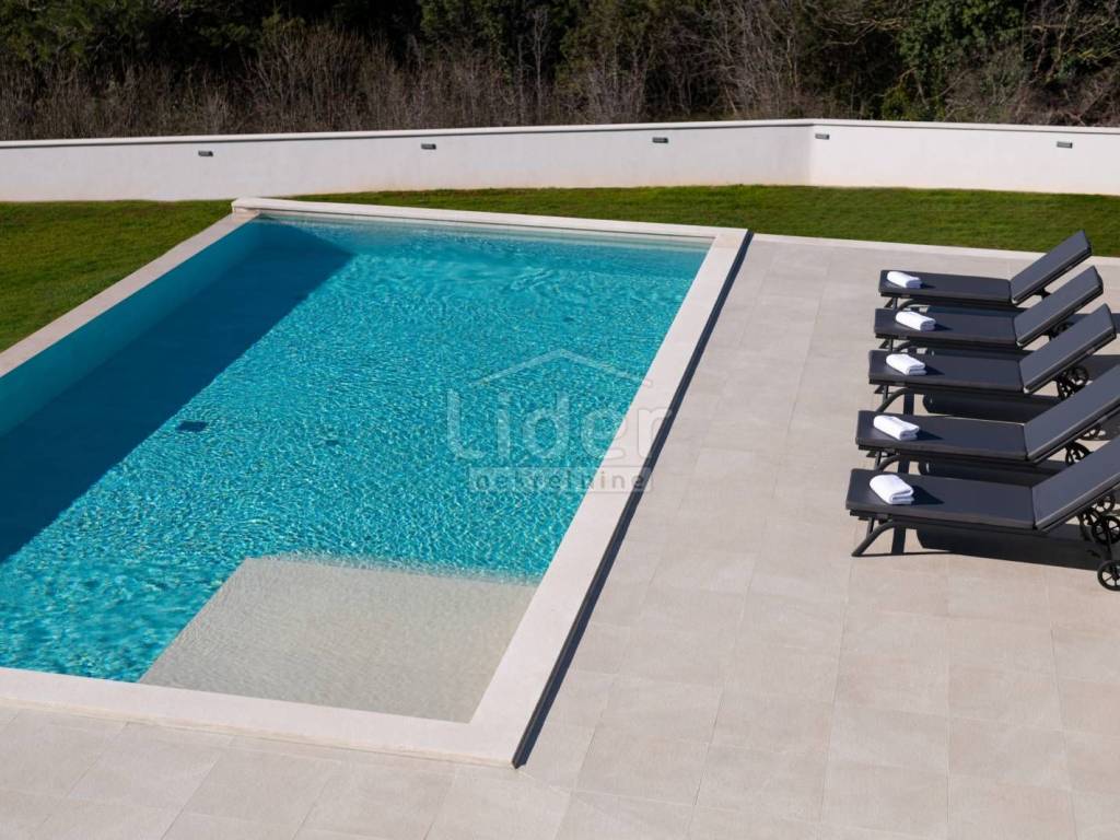 Newly built villa located in the vicinity of Labin, about 1000 meters from the sea. The villa is located on a plot of 1330 m2. It consists of a ground floor and a first floor.