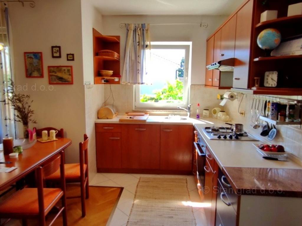 From the real estate offer of the Stan Grad Immobilien agency, a romantic apartment on the attractive tourist area of the island of Krk has been selected. This apartment is located in an excellent and rarely available location, very close to the sea and within walking distance of the center of Malinska and key life amenities. According to the type of property, this is a medium-sized one-story apartment. Within a very beautiful building, the apartment is located on the ground floor. The apartment has a total area of approximately 63 m2. It consists of living room, dining room, kitchen, 2 bedrooms, pantry, bathroom and loggia. The property with a preserved interior is equipped with a set of very good technical equipment and quality pieces of furniture. It is important to mention that in the adjoining, beautifully organized garden next to the apartment, there is an arranged area for grilling. The owner of the apartment will have one parking space at his disposal. In addition to the previously mentioned features, this apartment has a view of the landscaped surroundings and the natural landscape. This apartment is owned by a natural person and in the name of its transfer, the buyer is obliged to pay real estate sales tax in the amount of 3%. The seller of the real estate guarantees proper construction and ownership documentation and a quick transfer of the real estate to the name of the buyer. We will gladly accept the role of your partner in the search and safe acquisition of real estate in Kvarner. If you place your trust in us, the Stan Grad Immobilien agency will be happy to help you transfer the ownership rights of this property and the bill for its utility connections and services to your name.