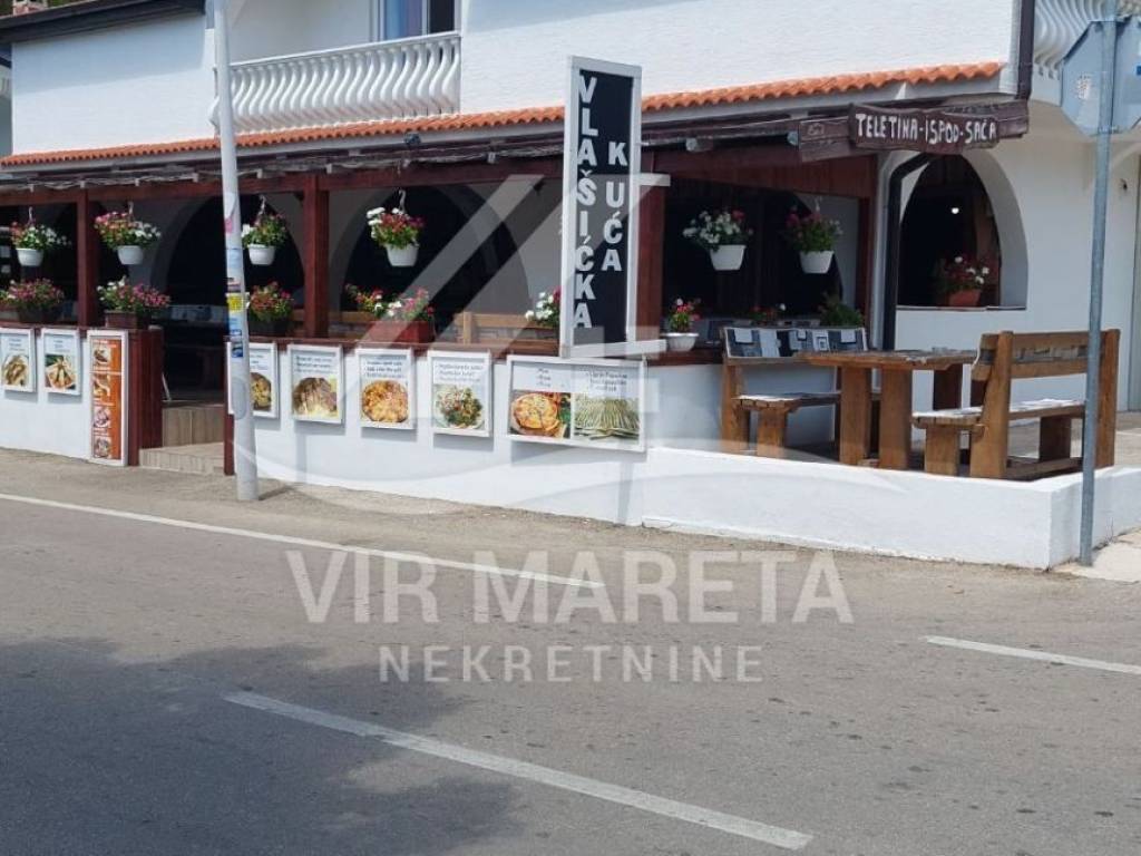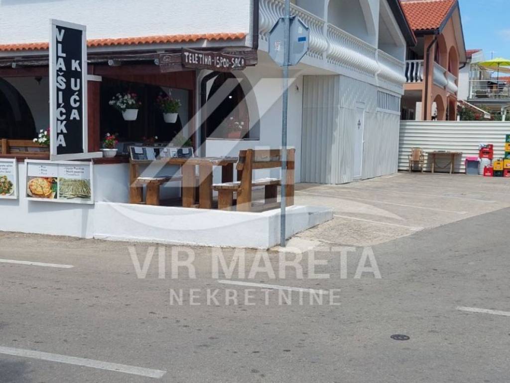 A commercial-residential building with a restaurant is for sale, only 120 meters from the sea, in a convenient location next to the main road.